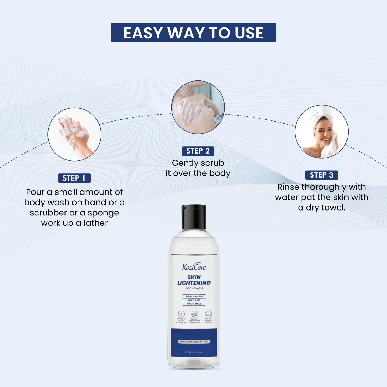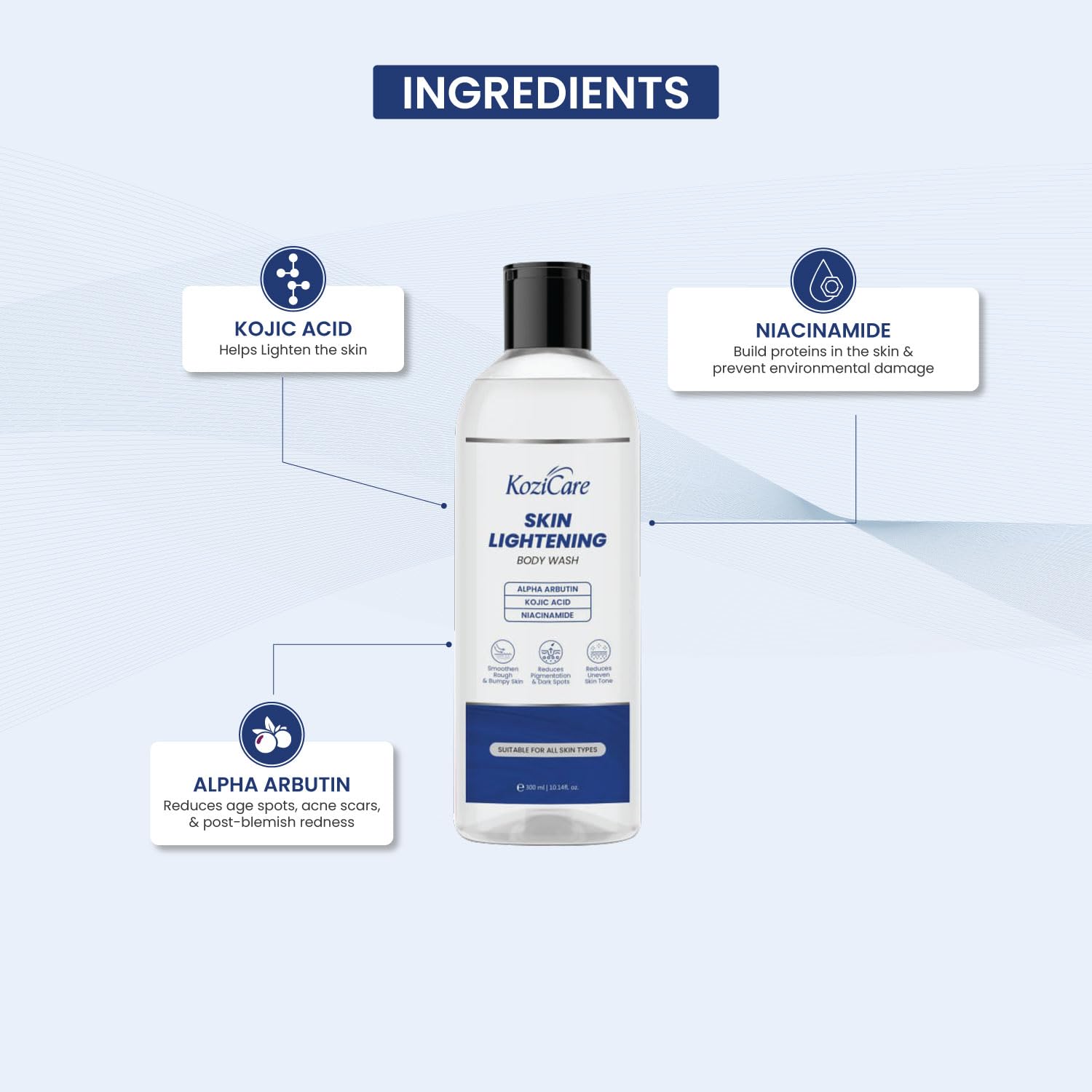 Kozicare Soap Skin Lightening Body Wash Gel | Alpha Arbutin, Niacinamide & Kojic Acid | Helps Reduces Pigmentation, Dark Spots & Uneven SkinTone |For Men & Women - 300 Ml