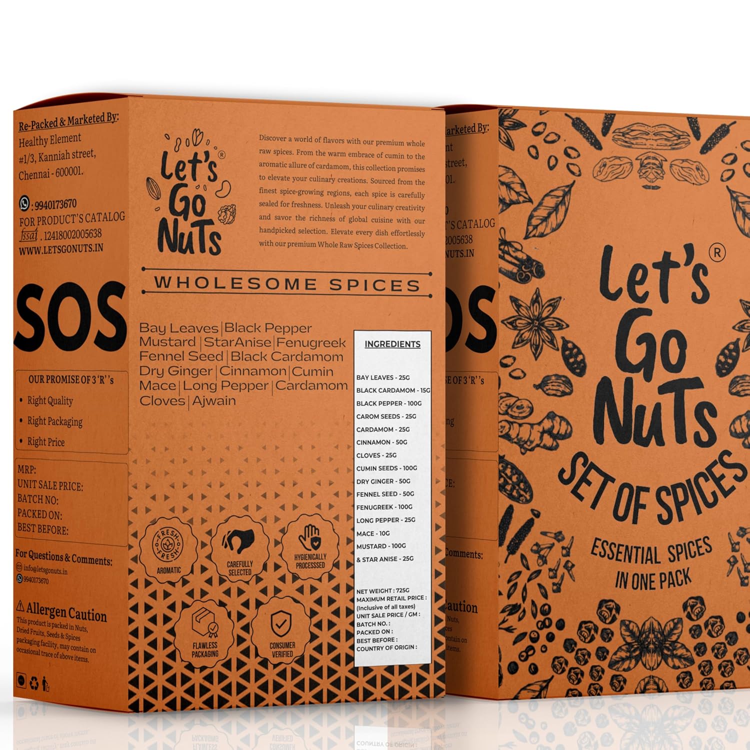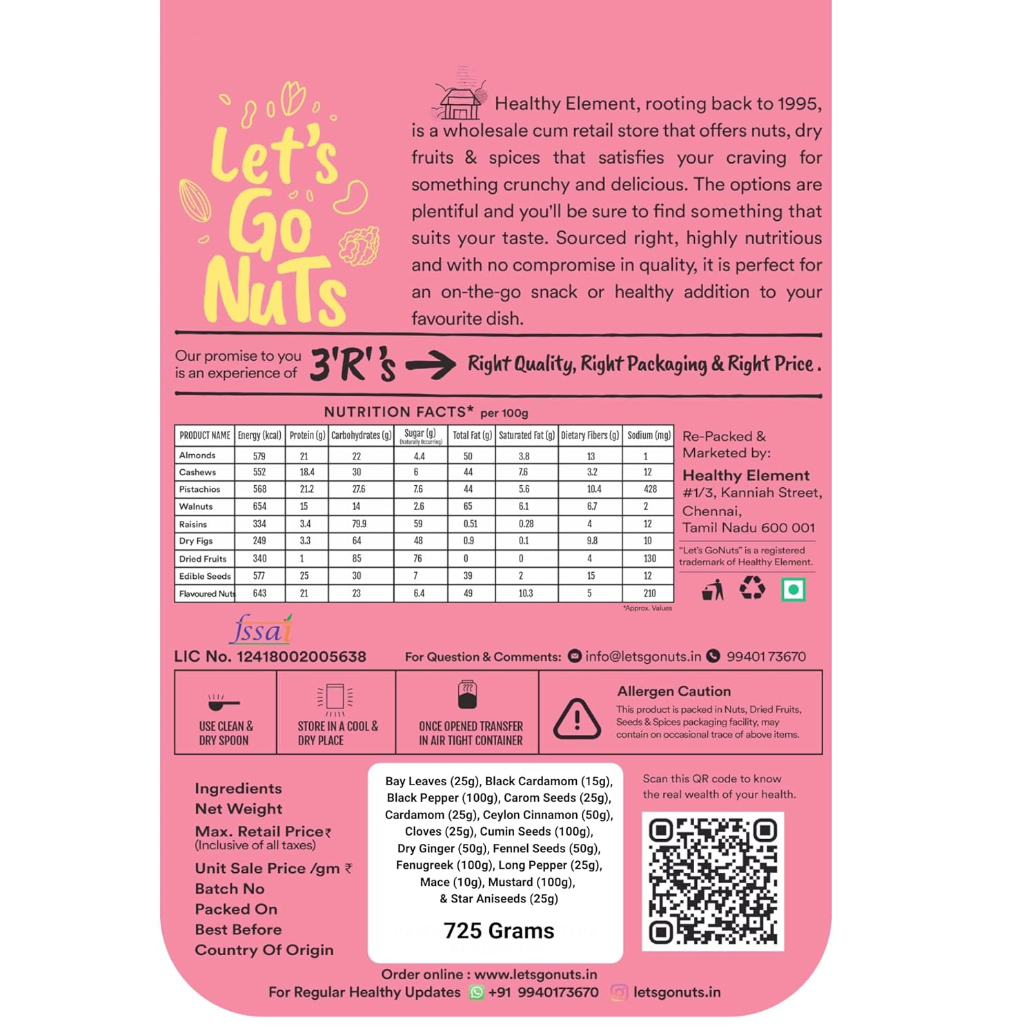 Let's Gonuts Real Wealth For Your Health Set of 15 Aromatic Whole Garam Masala Spices Combo Contains Spices like Cinnamon, Cardamom 725g