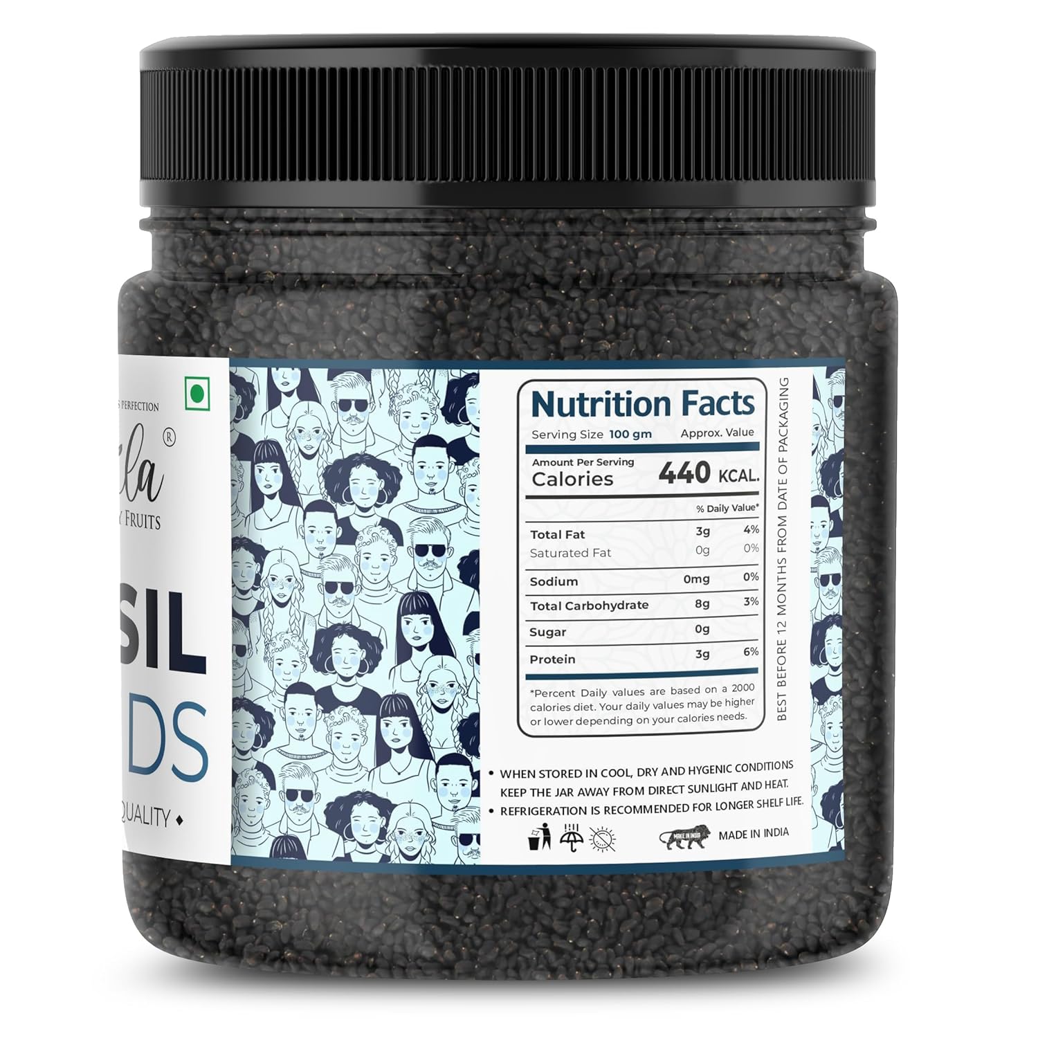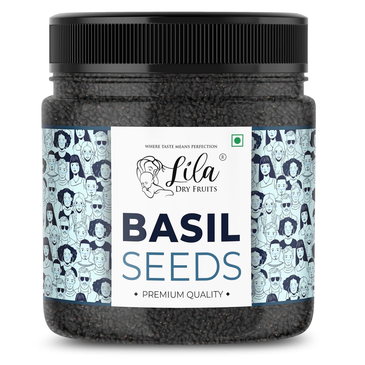 LILA DRY FRUITS Basil Seeds 500 Gms Jar Pack | Raw Organic & Natural Sabja Seed | Tukmaria Beej for Diet, Rich in Proteins and Minerals | Sabza Bij Low Calorie Snack Perfect for Gifting