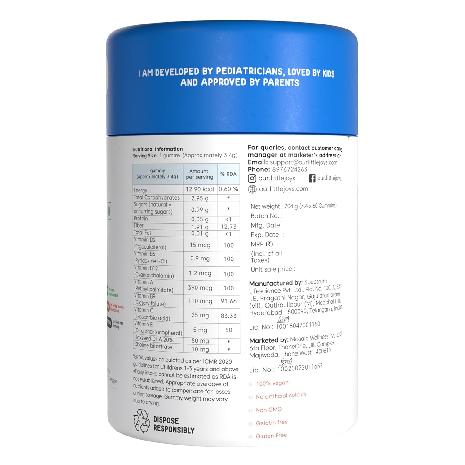 - Little Joys DHA Brain Health Gummies For Kids | 2-6 years | 60 Day Pack | Improved Concentration, Mood & Sleep | Packed With 8 Vitamins & Minerals | Multivitamin Gummies For Kids With No Added Sugar
