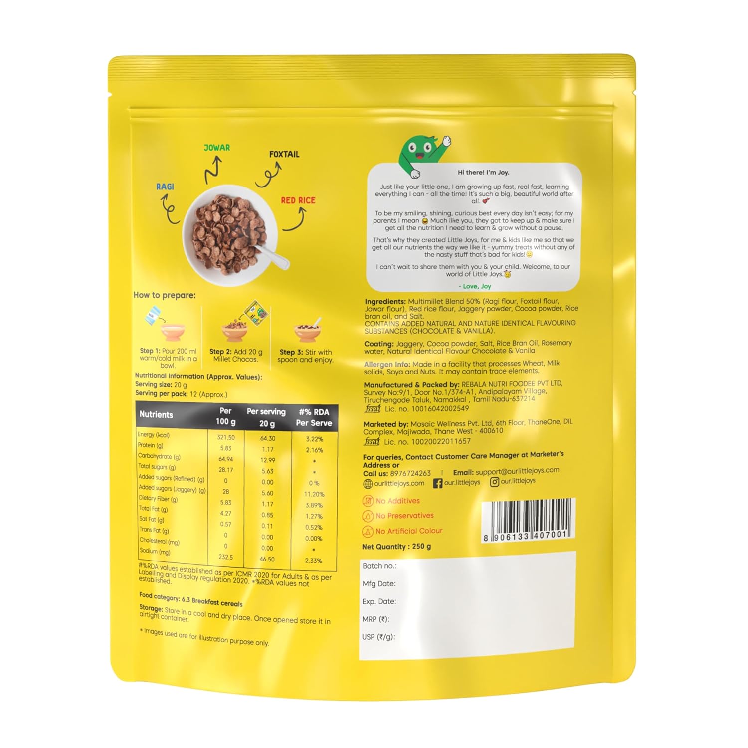 Little Joys Millet Choco Crunch | Healthy Breakfast Cereal for Kids | Made with Ragi, Jowar, Foxtail & Red Rice | No Maida, No Refined Sugar | Sweetened with Jaggery | 250gm