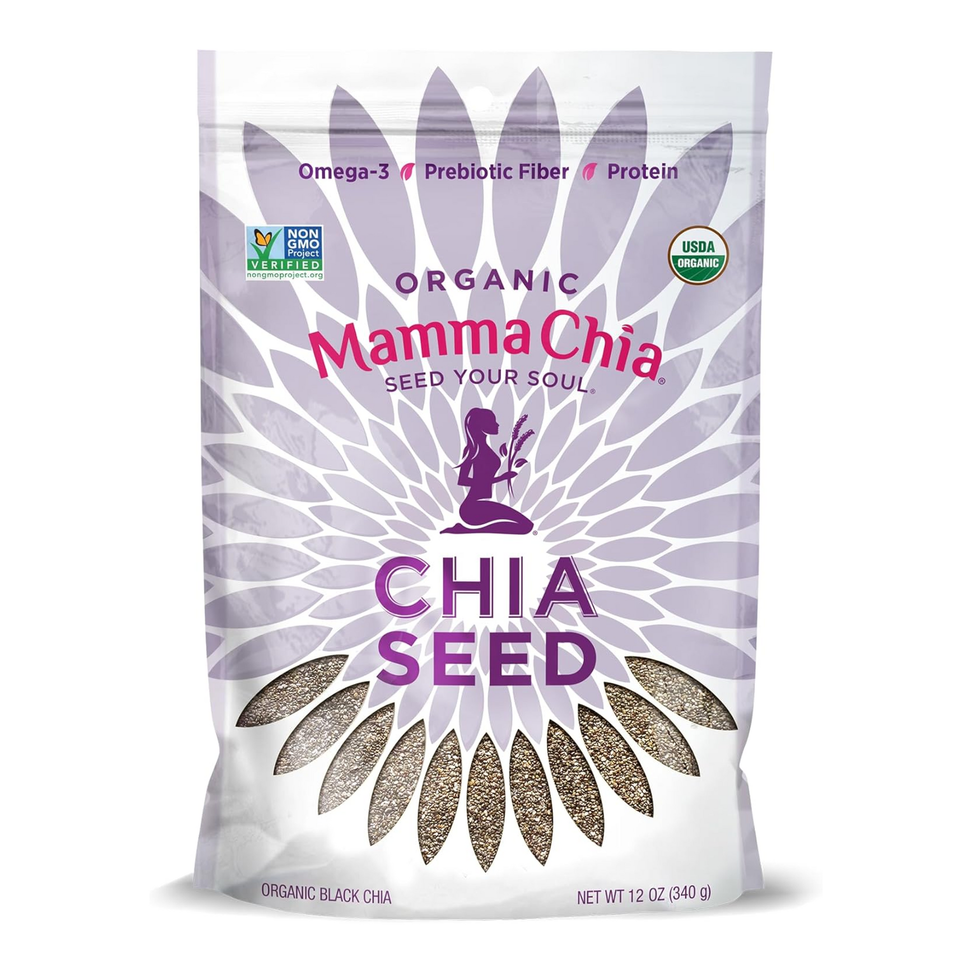 The mamma chia organic black chia seeds are a wonderful and nutrient dense addition to any salad, smoothie, baked good or other delicious dish. Mamma chia organic black chia seeds have only 60-calories per serving and are a healthy way to provide your body with the essential nutrition it needs. Each 1-tablespoon serving contains 2430-milligrams of omega-3 and is a source of antioxidants, protein and fiber. Chia seeds contain 25-percent more fiber than flax seeds, 70-percent more protein than soy beans, and 15 times more magnesium than broccoli. Incorporate these organic black chia seeds into any breakfast, snack, salad, dinner, or sweets for a healthy way to feed your soul''s purpose. As with all mamma chia products, black chia seeds are certified usda organic, non-gmo verified, no added sugar, gluten free and vegan. The mamma chia organic black chia seeds comes in a 12-ounce bag.