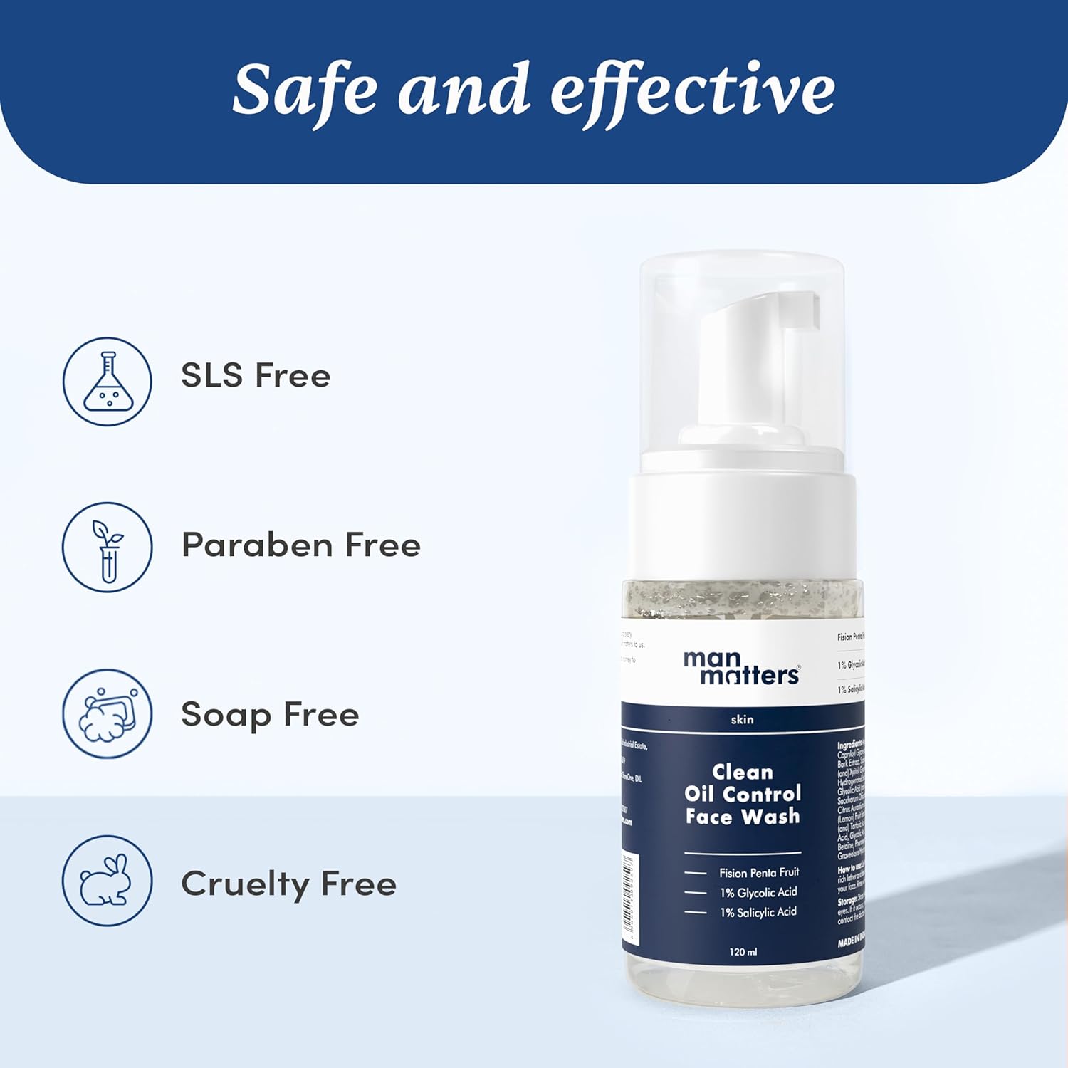 - Anti Acne Foaming Face Wash: Give your skin the freshness it deserves men, Man Matters soap-free face wash is designed to effectively combat your acne while being gentle on your skin. It exfoliates your skin but does not strip your skin of its natural oils.; This anti-acne foaming face wash contains a unique blend of Alpha and Beta Hydroxy Acids, and Salicylic Acids and a combination of other valuable ingredients to effectively cleanse, nourish and soothe your skin.