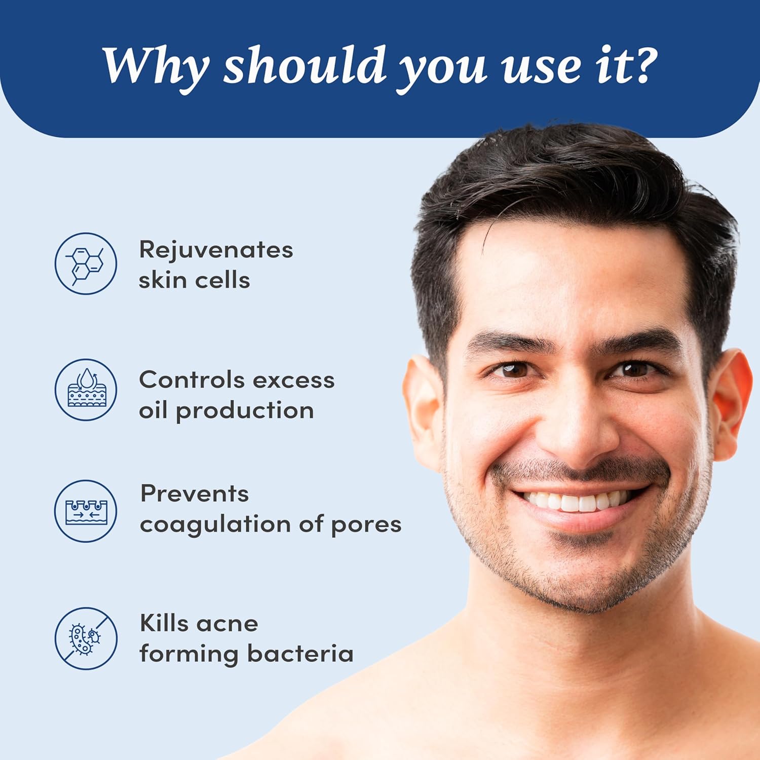 - Designed Specially For Men: Introducing the first dermatologically created skin products especially for men. Since men's skin is thicker, oilier & has larger pores, it is tougher to clean & requires a face wash suited to their needs. This will cause a reduction in acne in men who have normal & oily skin. This is not meant for men with Dry Skin.
