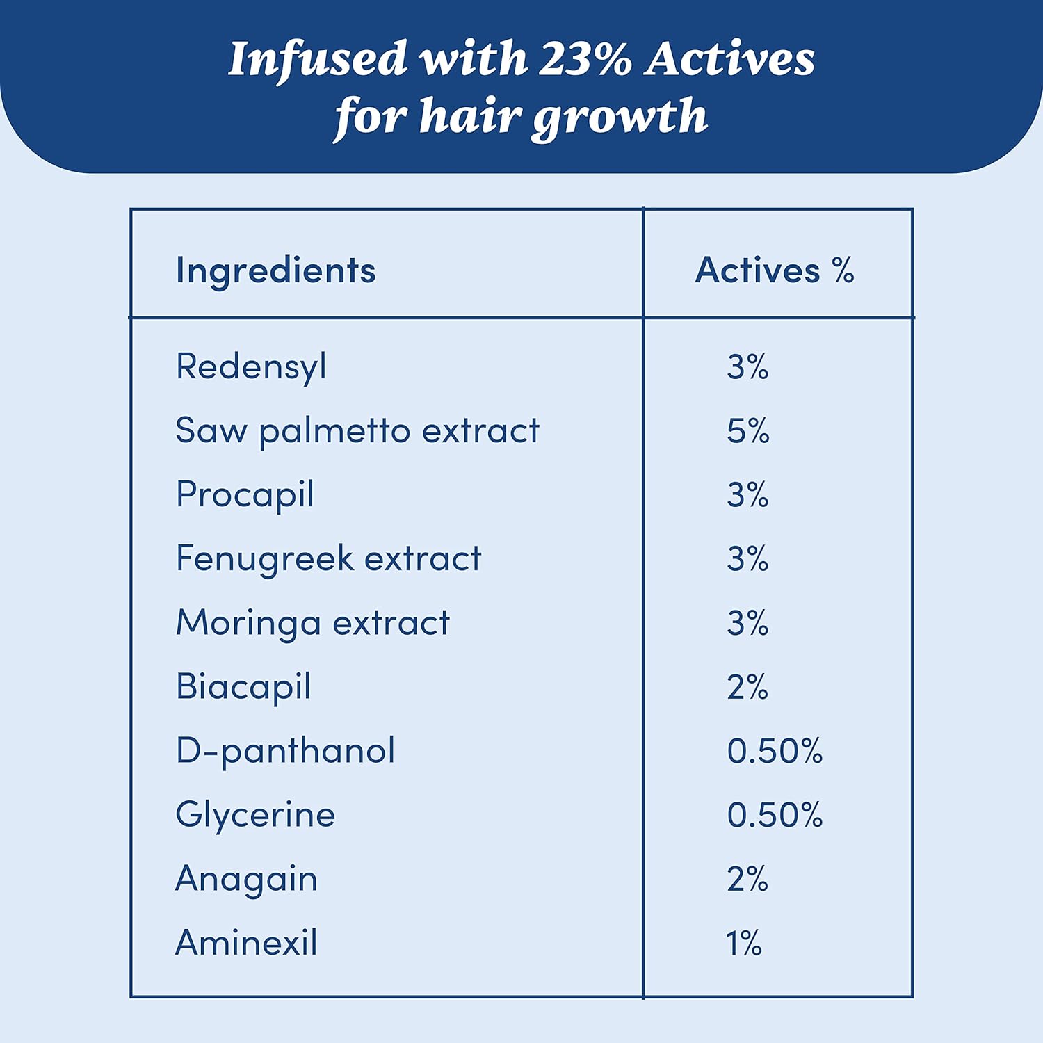 3% Redensyl, 2% Anagain, 1% Aminexil