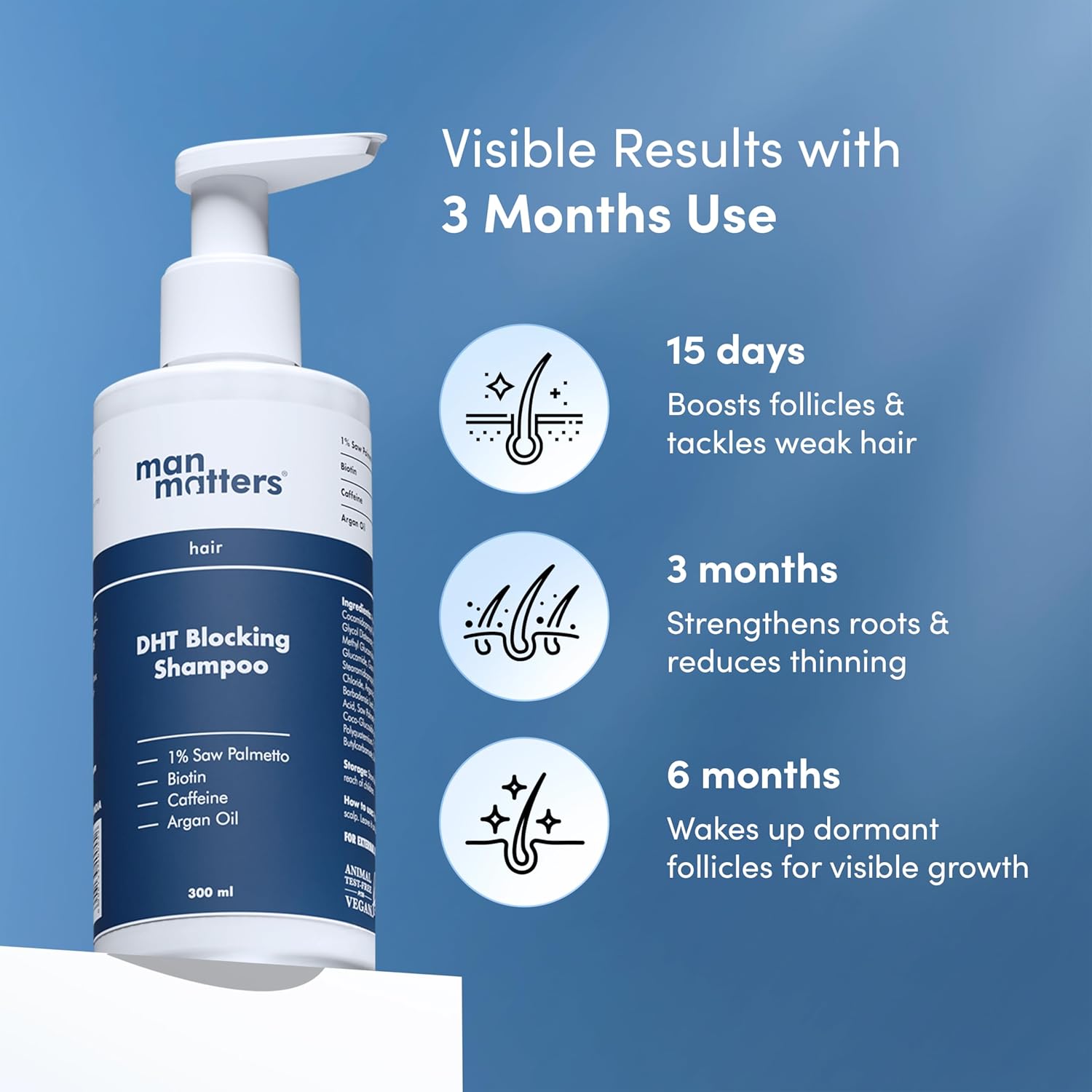 Man Matters Dht Blocking Anti Hair Fall Shampoo, Reduces Hair Fall, Strengthen Hair, With Power Of Caffeine, Saw Palmetto, Argan Oil, & Biotin | 300ml