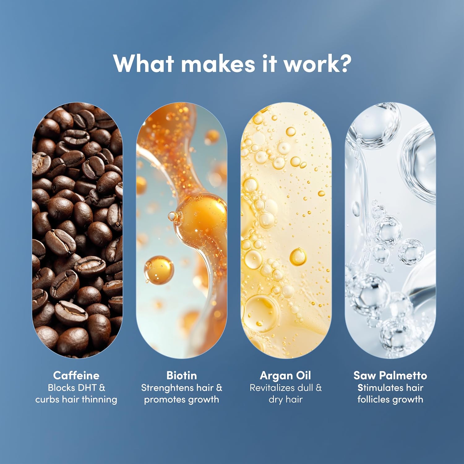 - NUTRIENT-PACKED FORMULA OF BIOTIN, ARGAN OIL AND CAFFEINE: Reduces hair fall and maintain overall hair health with a nice soft sheen, our shampoo does it all. Biotin is a vitamin that stimulates hair nourishment, thickens your hair making it appear more lustrous. Caffeine blocks the DHT hormone, which is the major cause of hair loss in men. Argan oil is rich in vitamin E to strengthen, repair, hydrate and soften your hair to give a frizz-free look.