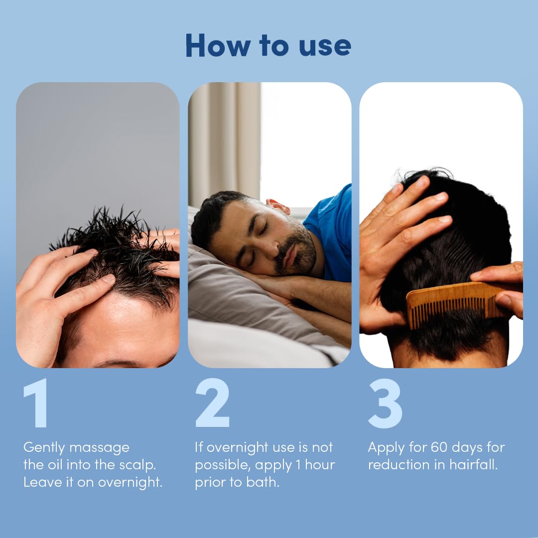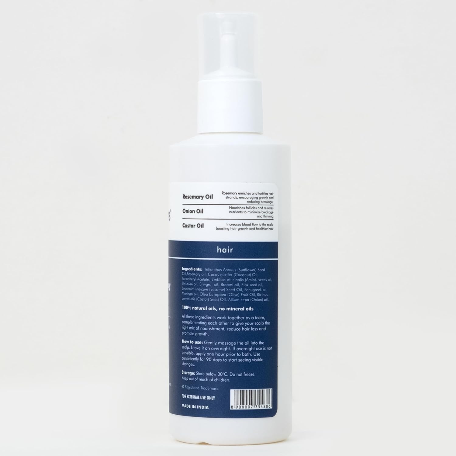 - NO MINERAL OILS: 100% natural oils only with 5 essential oils for hair. Made with a combination of oils such as bhringraj oil, onion oil & rosemary oil for hair that help control hair fall and Gives essential nutrients to the follicle