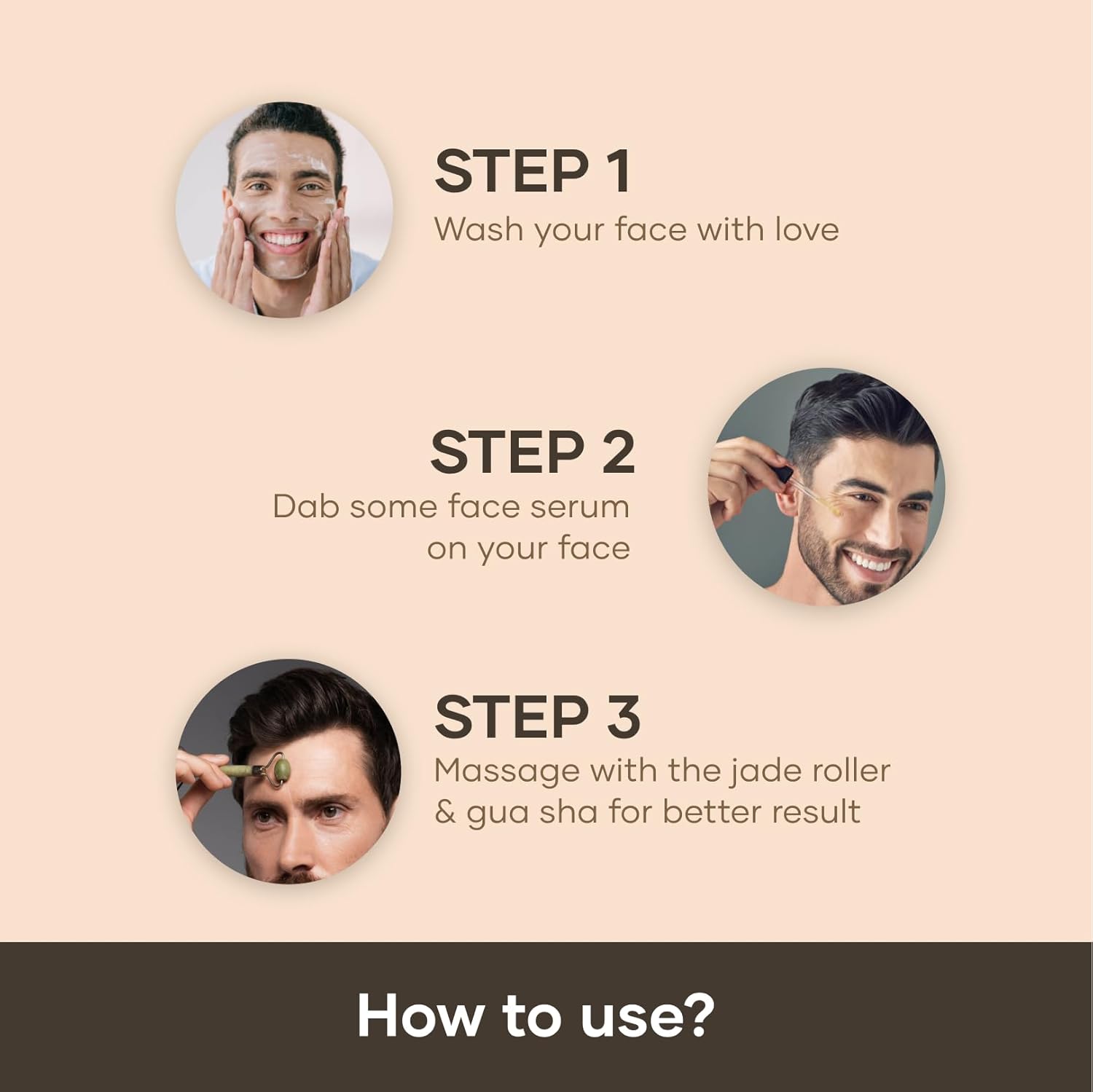 - Directions: Clean your face with lukewarm water and pat it dry. Apply glow skin serum on your skin. Massage your face, neck and cheekbones with the jade roller and gua sha. Clean your roller after using it. Apply a good sunscreen to seal in moisture and protect the skin from further sun damage. Use it twice in a day for best results.