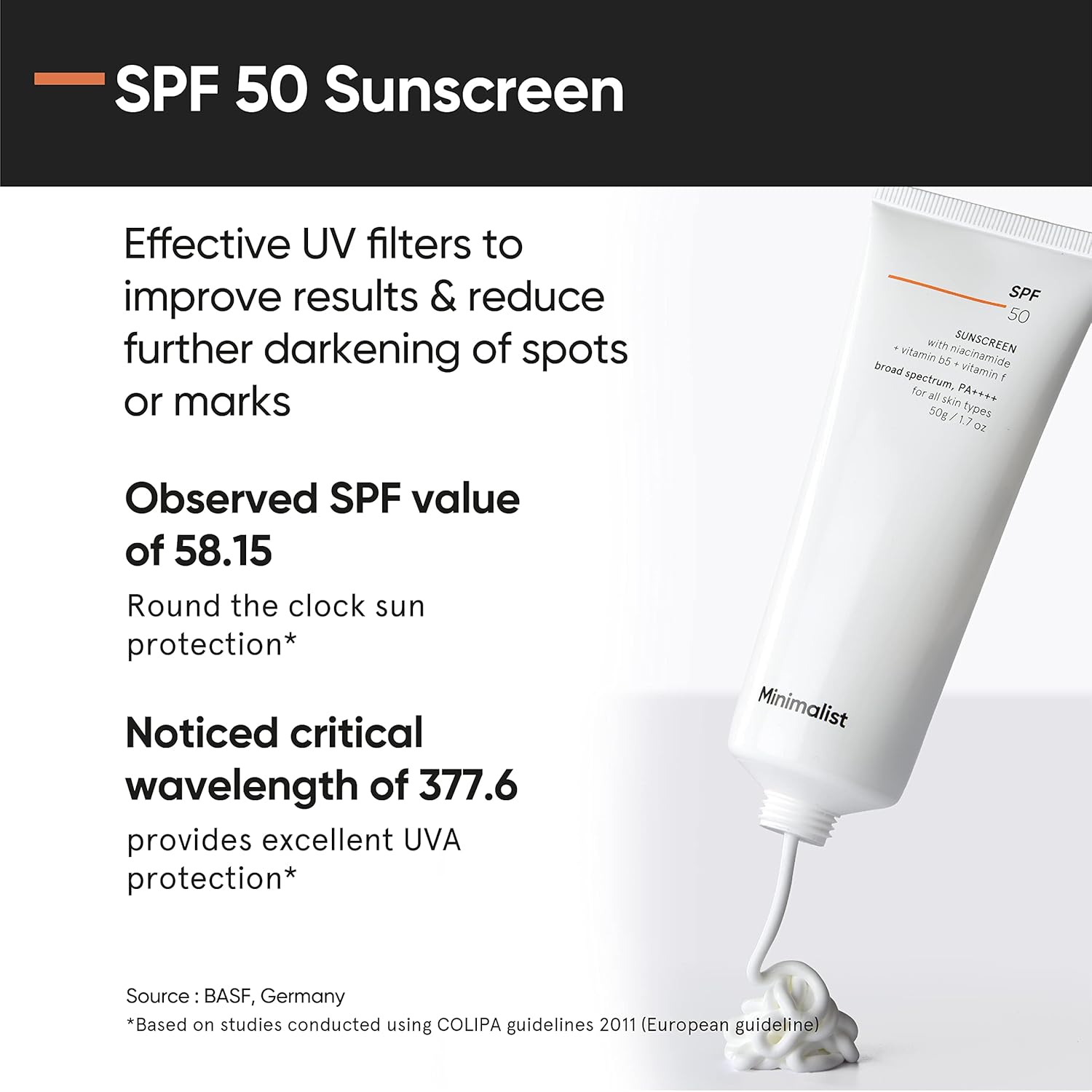 - Protect your skin from harmful UV radiations with our SPF 50 sunscreen. It is a broad spectrum, PA++++ rated sunscreen, and has a very light texture that spreads easily & disappears leaving behind a natural, moisturised, non-shiny look