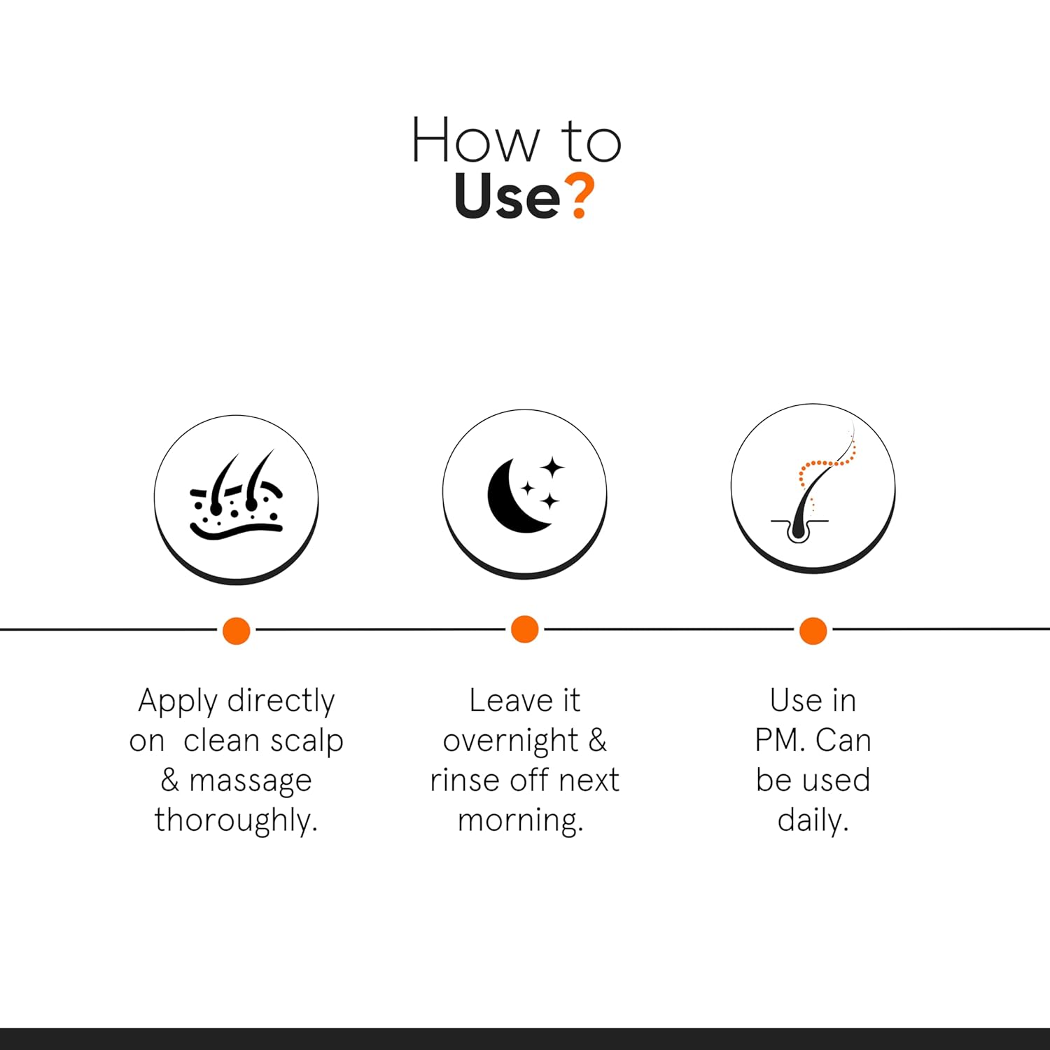 Apply a few drops daily on clean, dry scalp using the dropper provided and massage thoroughly. Do not rinse & leave it overnight. With daily usage, expect reduction in hairfall in 4 to 6 weeks.