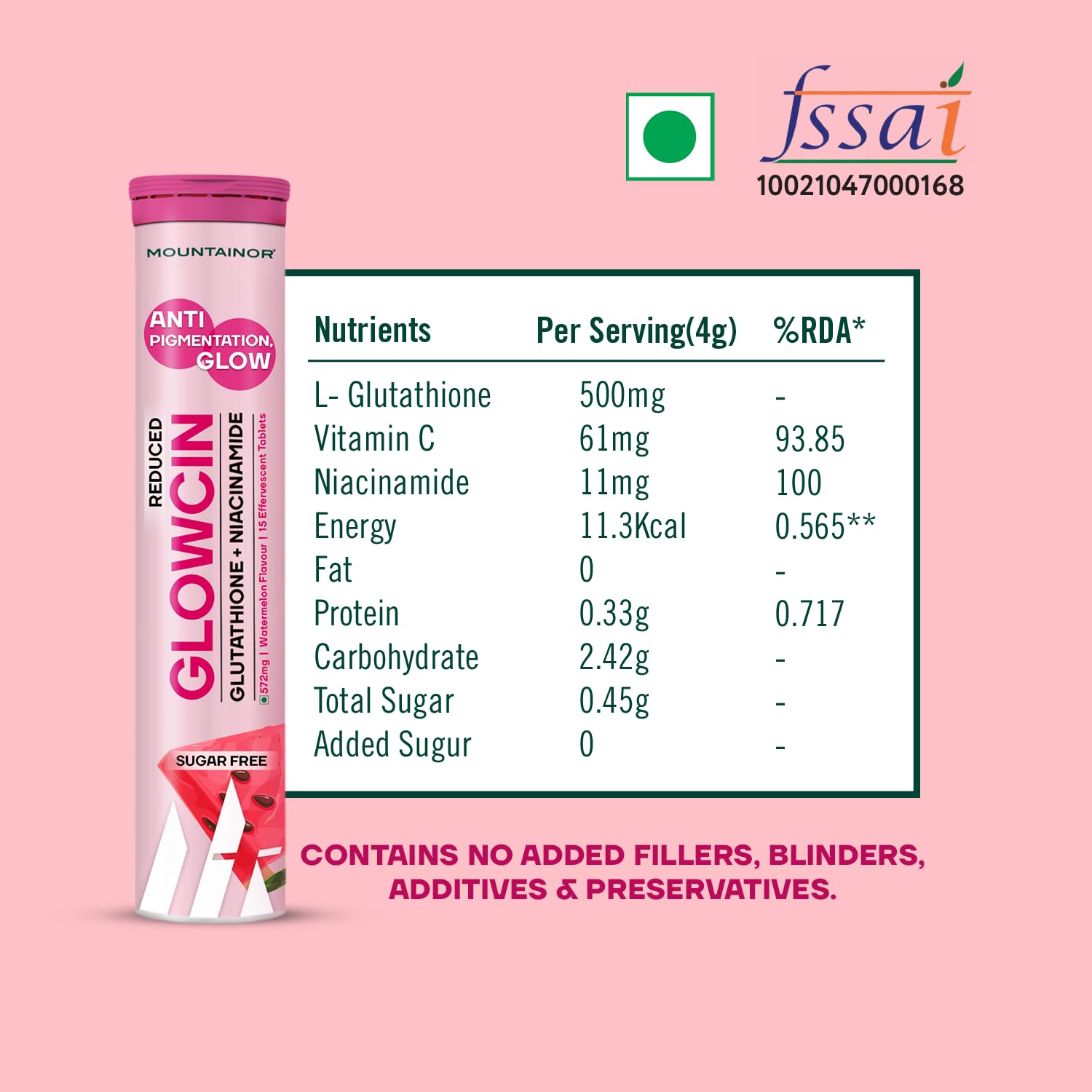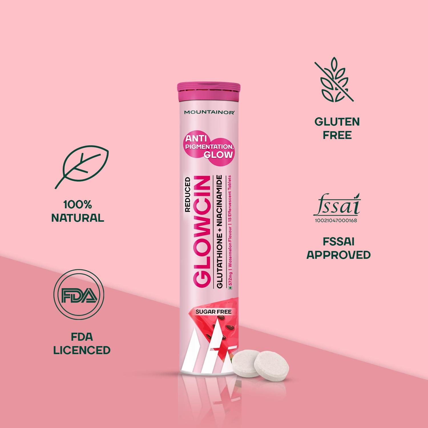 - TRUSTED GOODNESS & CERTIFIED QUALITY- MOUNTAINOR we promise purity and excellence. Our Glutathione effervescent tablets supplement is backed by rigorous quality standards and certifications, ensuring that you receive a product that's safe, reliable, and effective. It is manufactured in a certified facility: FSSAI, WHO-GMP, HACCP, ISO. Elevate your beauty and wellness