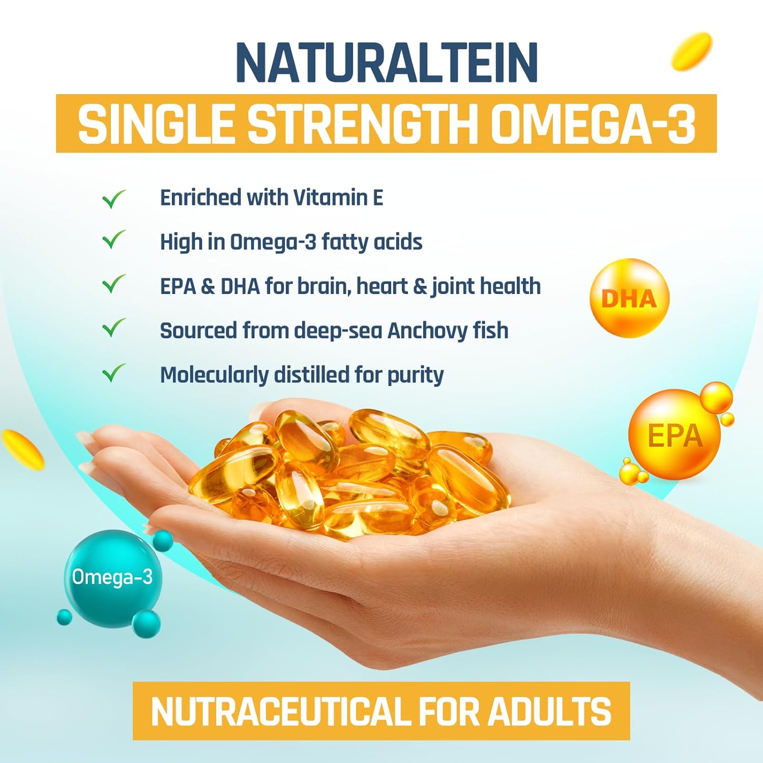NATURALTEIN – Single Strength Omega 3 (60 Capsules), enriched with Vitamin E