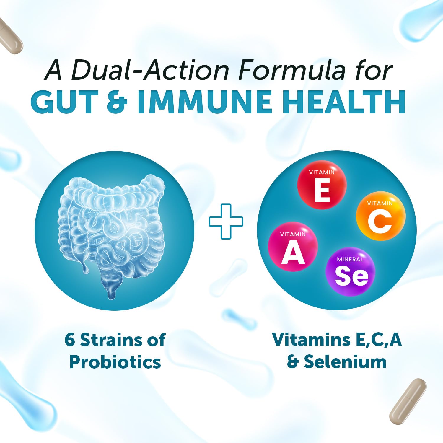 Neuherbs Acidophilus Daily Probiotics with Prebiotic, Blend of six healthy Probiotics (20 Billion CFU) with added Vitamin C, E & Selenium | For Immunity & Gut Health, Capsules 60 Count for Women & Men