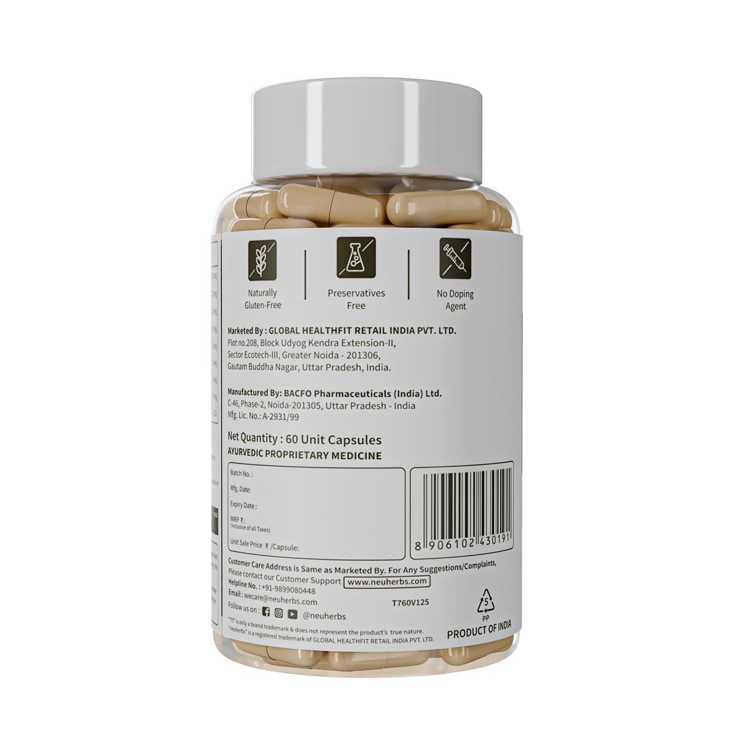 Neuherbs Ayurvedic T7 Test On For Men, With Shilajit, Ashwagandha, Gokshura, Kali Mirch, Safed Musli, Kapikachhu seed for Muscle Growth, Strength & Stamina | 60 Capsules