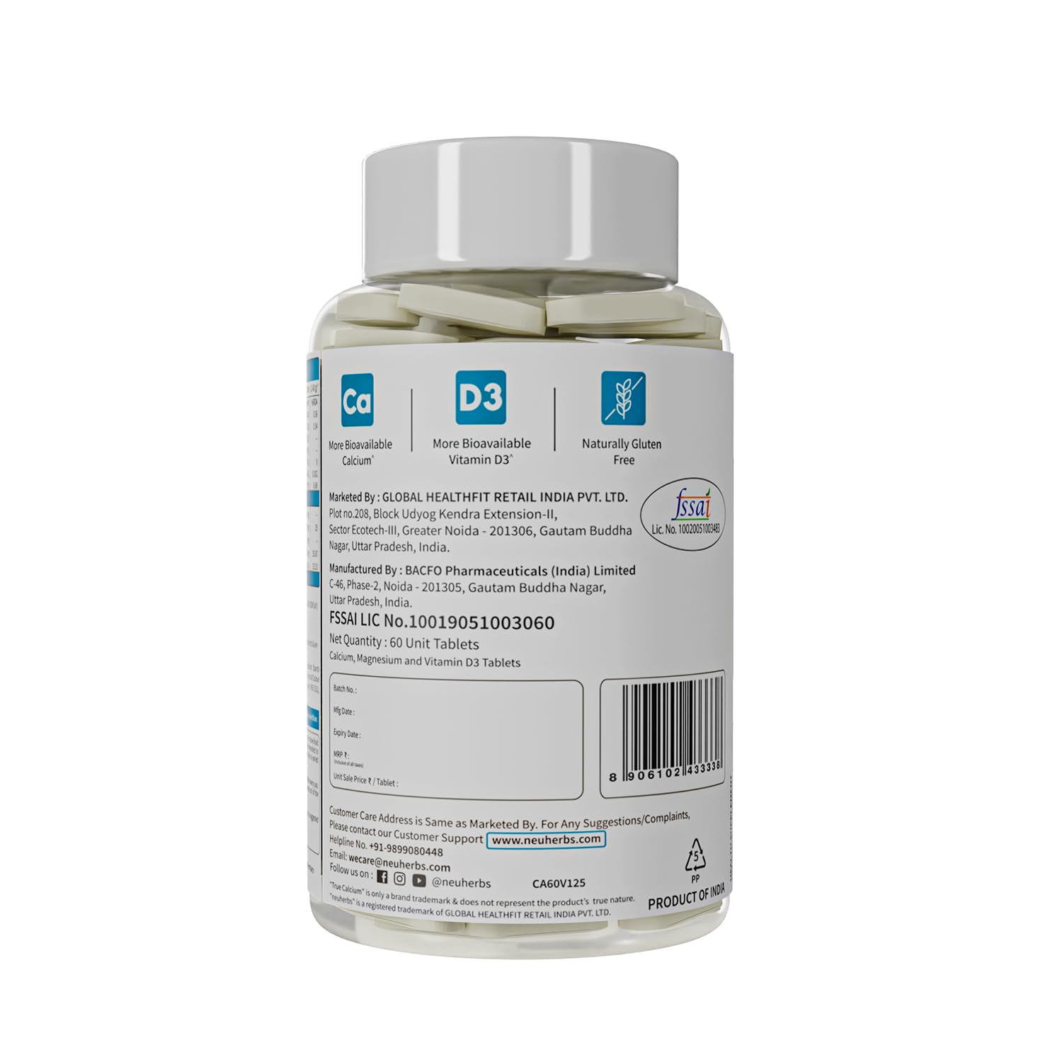 Neuherbs Calcium - 60 Tablets | True Calcium Supplement 1000mg For Men & Women | With Vitamin D3 & Magnesium | Support Bone, Joint & Muscle Health