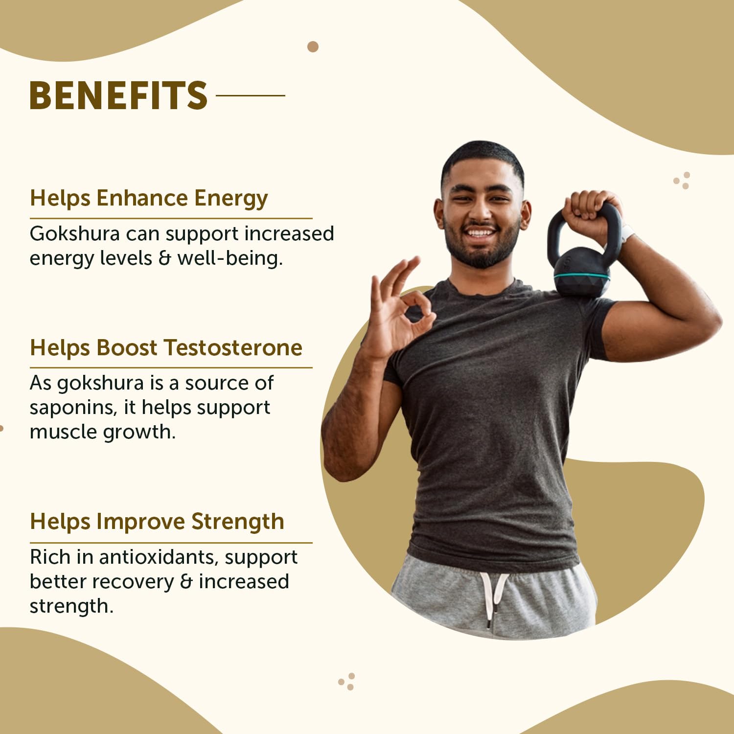 - Helps Boost Testosterone: As gokshura is a source of saponins, it helps support muscle growth.