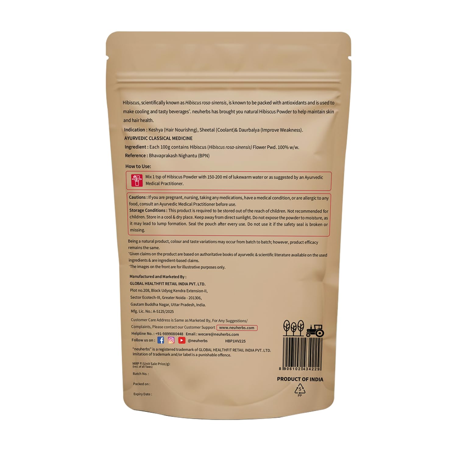 Take 1/2 tsp (2.5g) of neuherbs Hibiscus Powder with 150-200 ml of lukewarm water once a day or as suggested by a healthcare professional.
