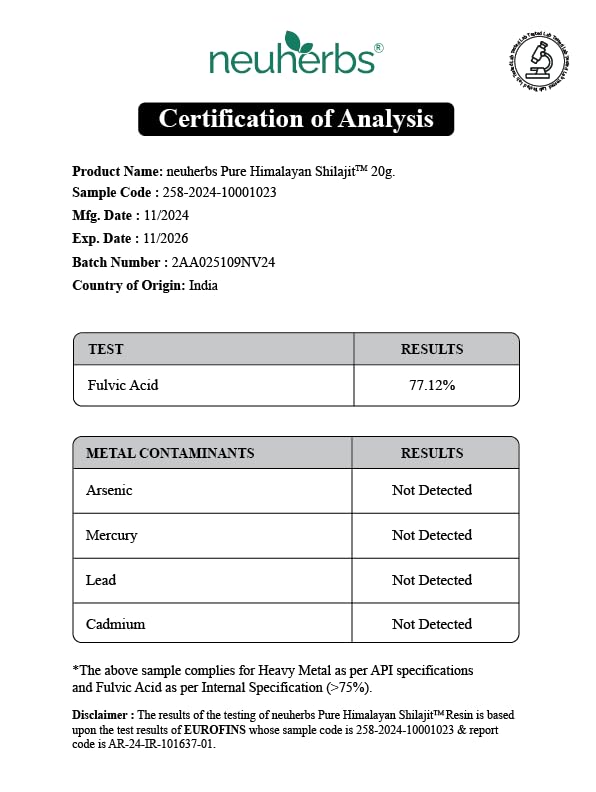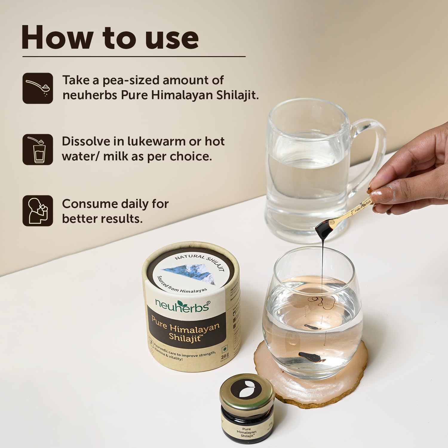 - 🍃 Shilajit For Muscle Recovery : neuherbs Pure Himalayan Shilajit Resin offers upto 75% fulvic acid that helps speed up muscle recovery post workout by reducing inflammation and repairing muscle tissues.