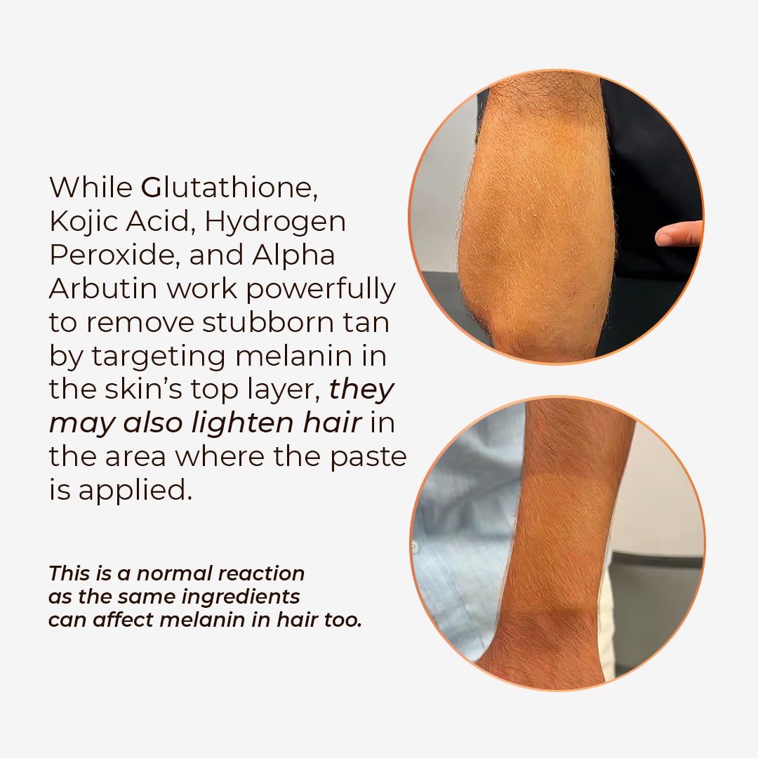 - Powered by Kojic Acid, it effectively fades stubborn tan, leaving your skin visibly brighter.