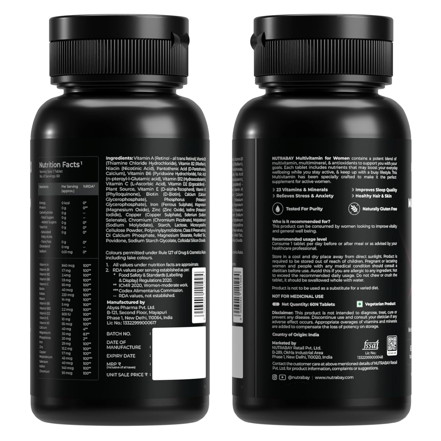 Nutrabay Pro Active Multivitamin for Women – Effective Doses of Iron, Vitamin A, B5, B6, C, D, E & K and Minerals – Immunity, Hair, Skin & Bone Support – 60 Tablets | 100% RDA Dosage | Purity Tested