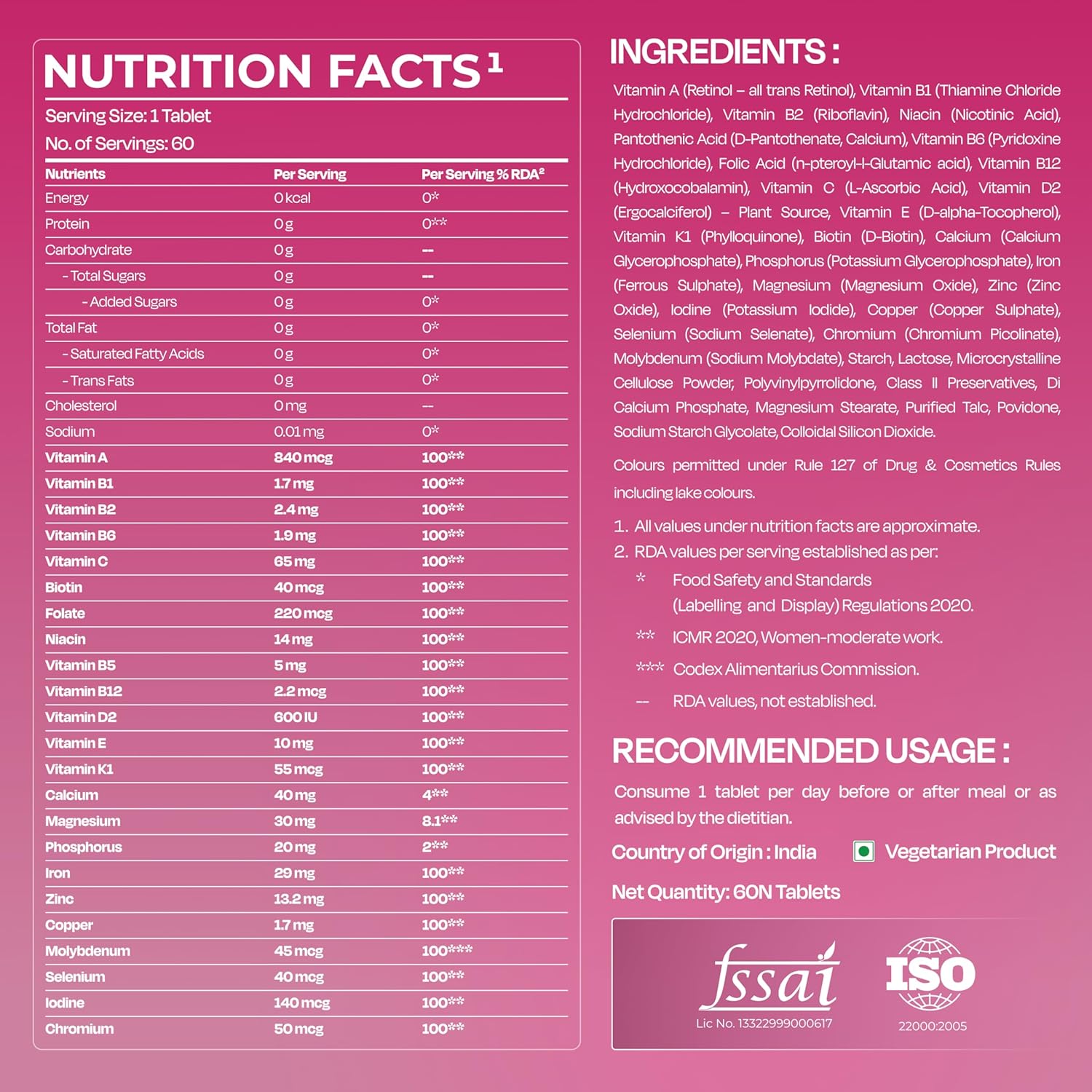 | Flavour | 60 tablet |