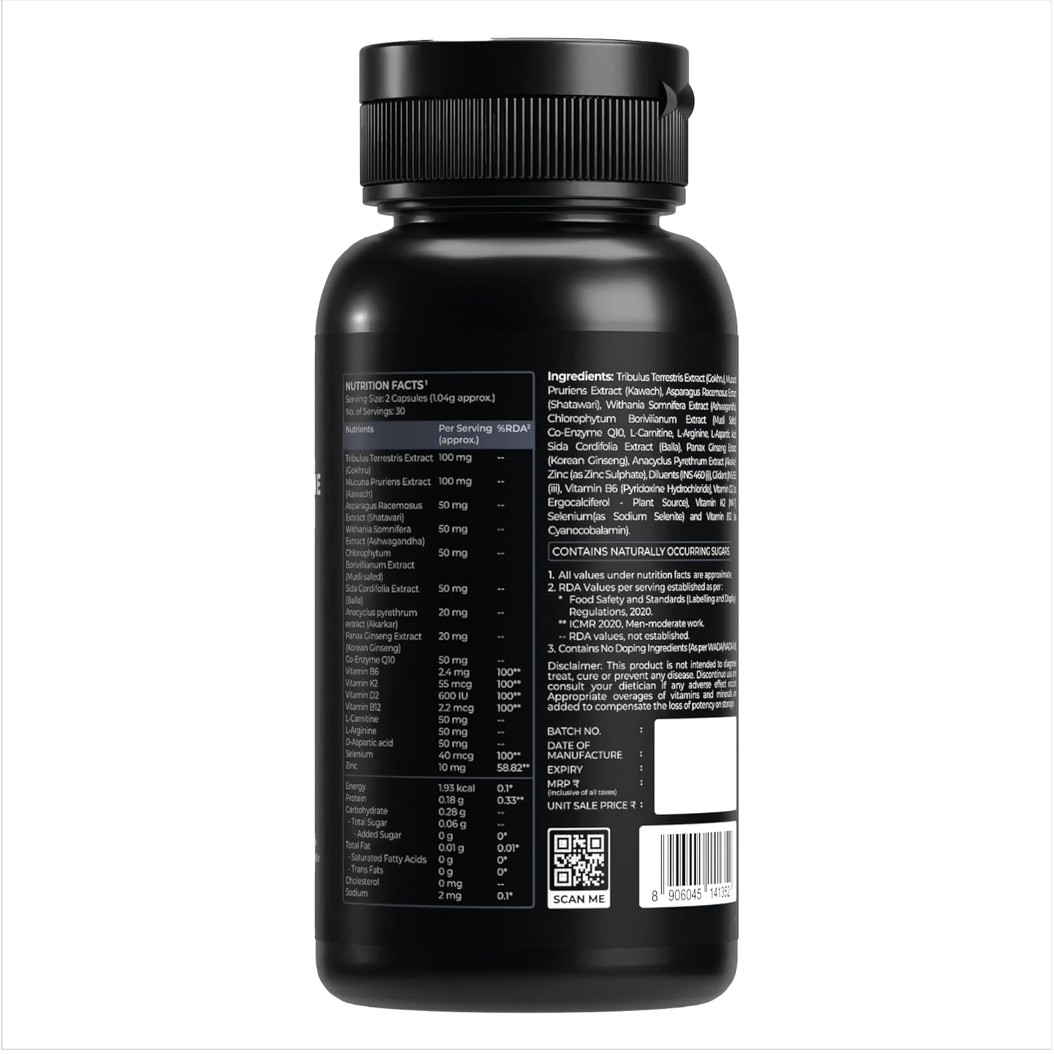 • Nutrabay Pro Testosterone Supplement contains Gokhru, Kawach, Shatavari, Ashwagandha, Safed Musli, Korean Ginseng and Co Enzyme Q 10. This is one of the effective combination for Testosterone Support