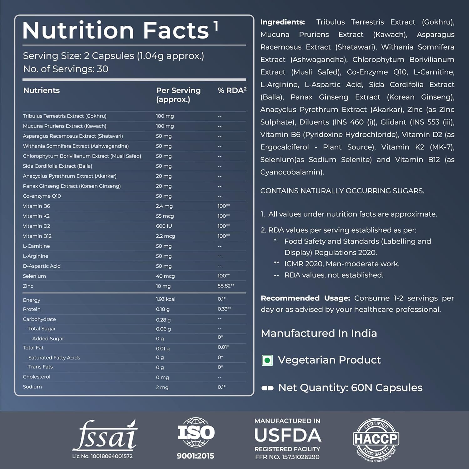 • Consume 2 capsules daily with or after meal or as suggested by healthcare professionsal / dietician. This product can be consumed by Adults, Elderly, Men & Women