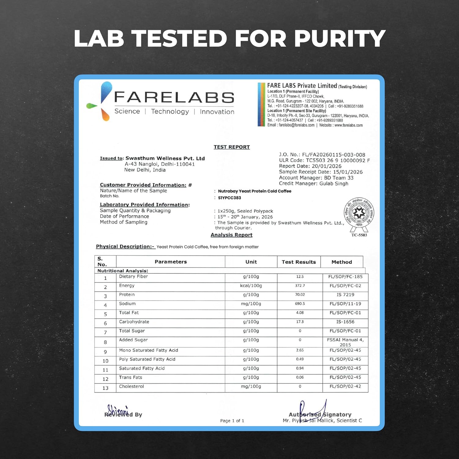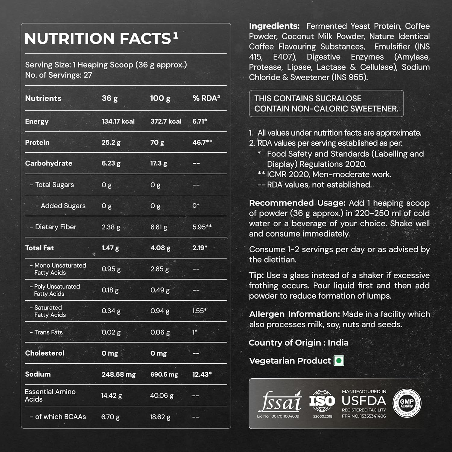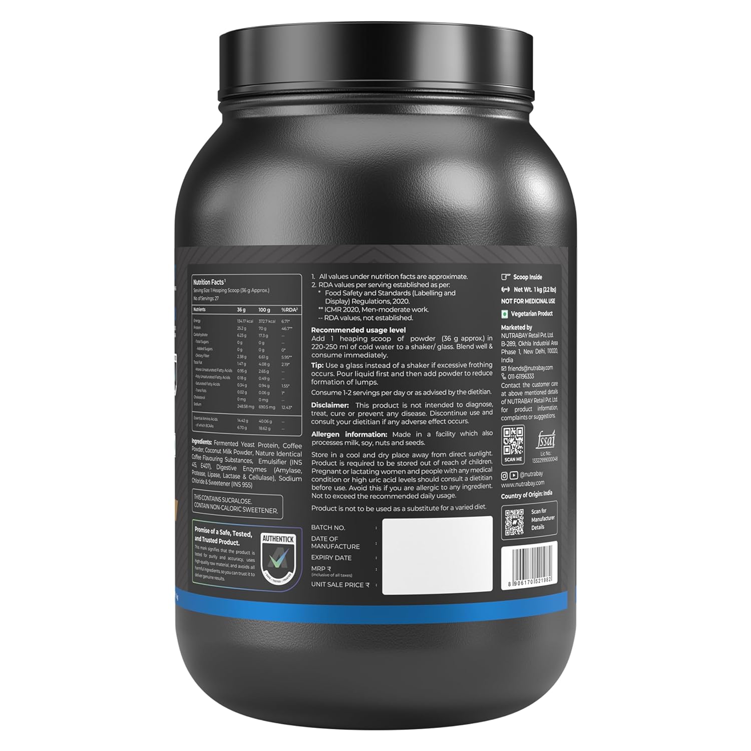 Nutrabay Yeast Protein Powder - 1kg, Cold Coffee | 25g Protein & 6.7g BCAA Per Scoop | All 9 EAAs | PDCAAS of 1 | Lactose Free, Soy Free | Superior Muscle Growth & Recovery
