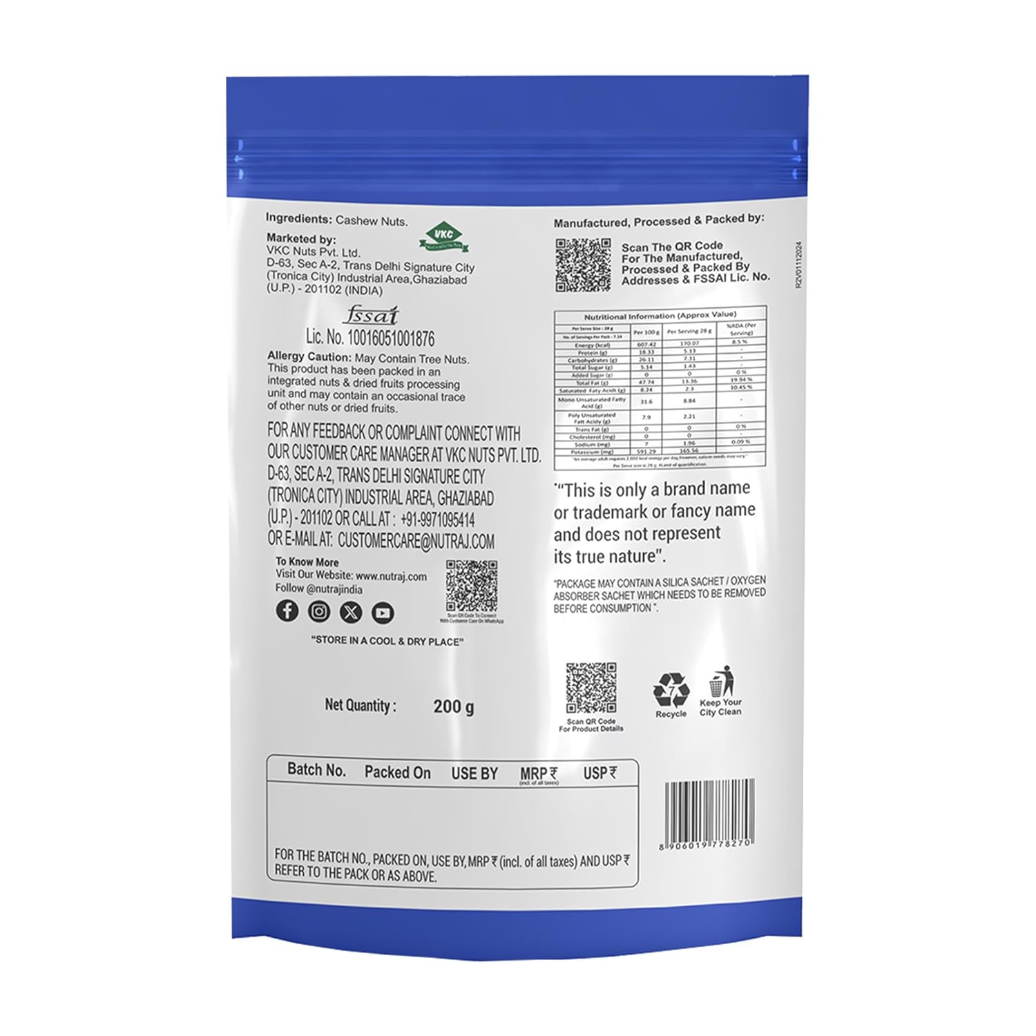 Nutraj Whole W320 Cashew Nuts 200g Pouch | Kaju | Dry Fruits and Nuts | Grocery Items