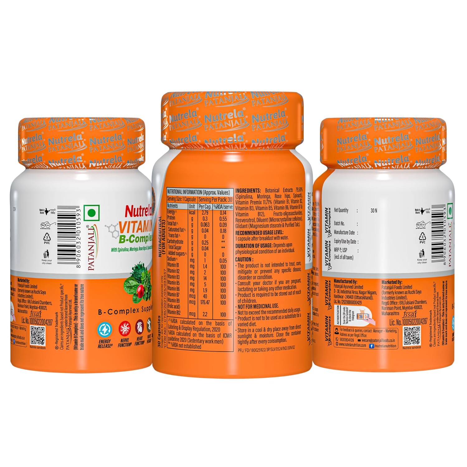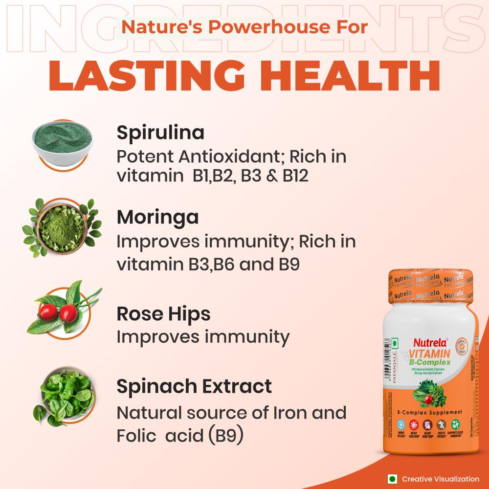 - PROVIDES 100% RDA OF B-COMPLEX: Nutrela Vitamin B-Complex is scientifically designed dietary supplement to fulfill the daily requirement of water soluble B series vitamins (B1,B2,B3,B5,B6,B7,B9 & B12).