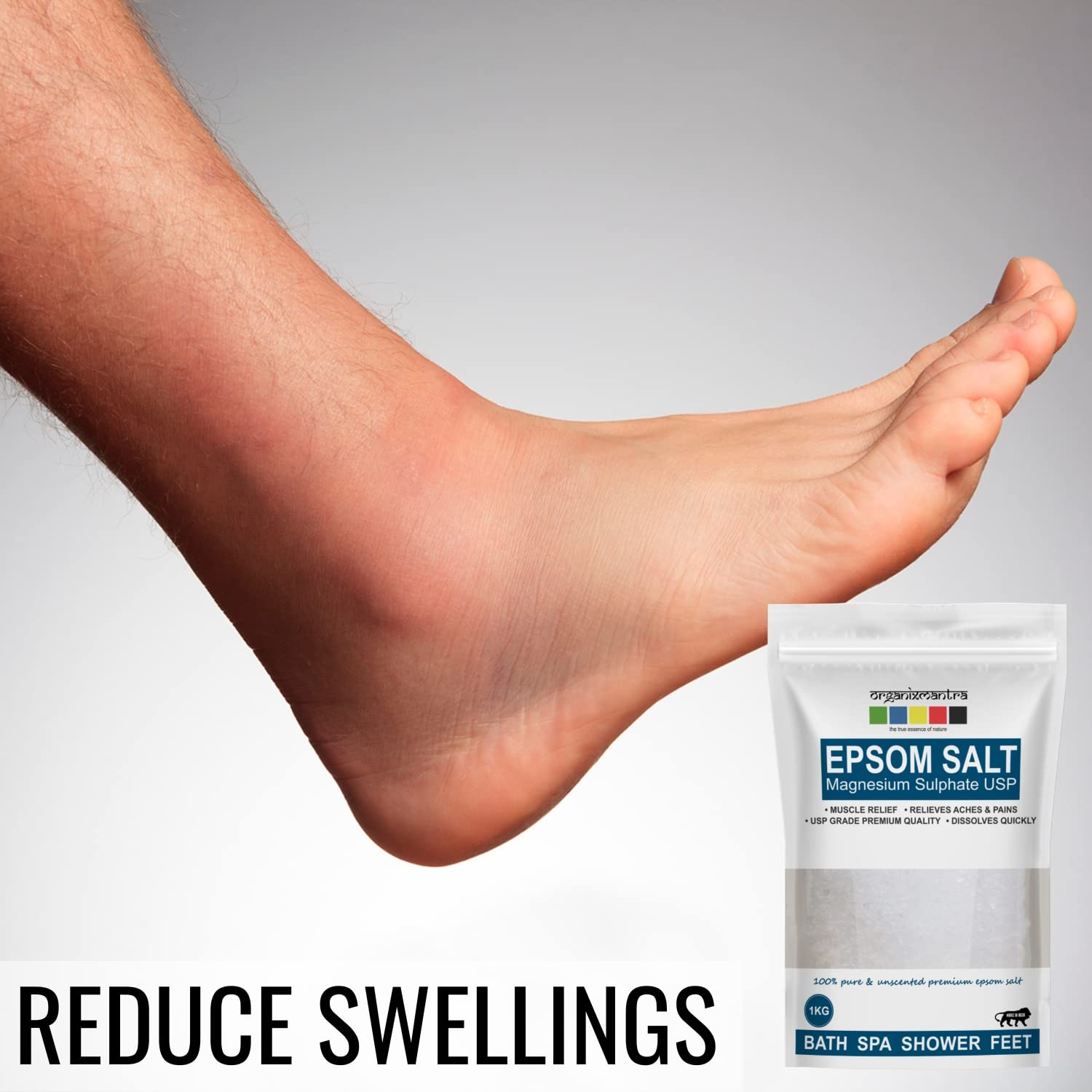 Organix Mantra Epsom Bath Salt is of premium USP Grade that can be used in foot baths, baths and in DIY body scrubs. Soaking your feet in Epsom salt and an Essential Oil infused water before bedtime reduces the soreness, cleanses your feet and softens the skin while aiding in a good night’s sleep. Add a couple of drops of your favorite Essential Oil and Carrier Oil such as Jojoba or Grapeseed to Epsom Salt to make body scrub. This is known to help rejuvenate and detoxify your skin.