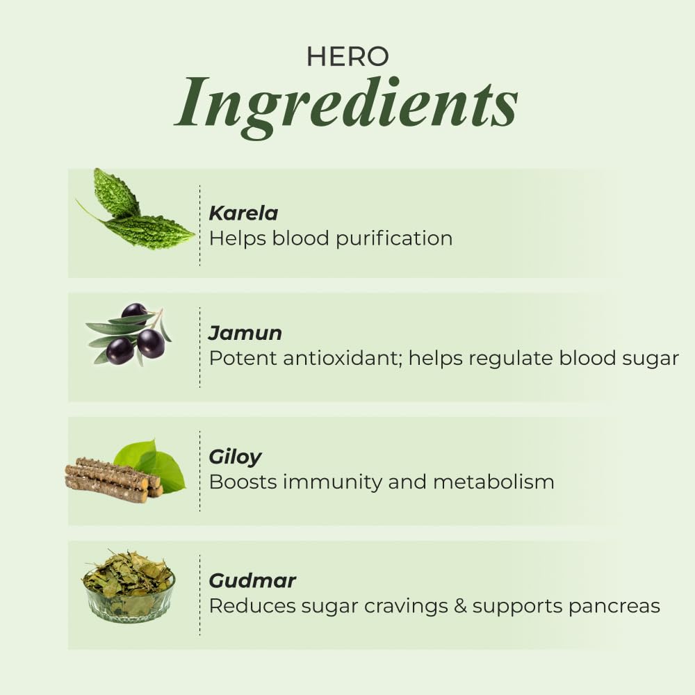 - BACKED BY AYURVEDA, CRAFTED FOR MODERN LIVES: Features Karela, Jamun, Giloy, and Gudmar to manage sugar cravings, improve glucose metabolism, and support the pancreas.