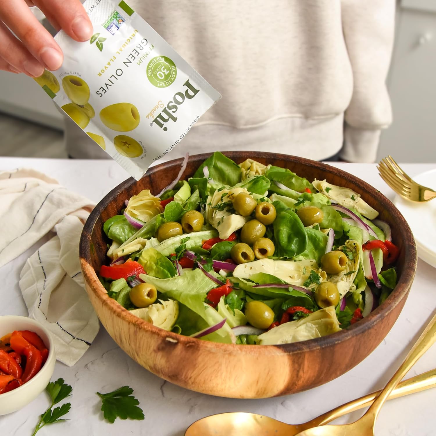 Tear open & enjoy any time! Made with simple and natural ingredients, Poshi Olives seamlessly fit into any meal of the day. They are vegan, keto-friendly, and contain 0g added sugars. Plus, they are gluten, grain, nut, and soy-free, with no artificial preservatives.
