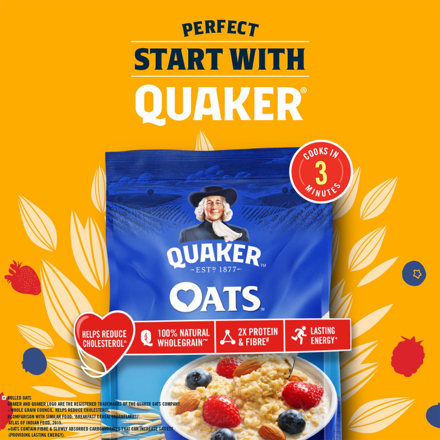 Quaker Oats can either be eaten sweet or savory. Enjoy the wholesome benefits of this whole grain in various meals or snacks at any time of the day. For a hearty breakfast meal, add milk topped with fruits and nuts; for a warming sweet flavor, add honey, cinnamon, or brown sugar. You can also add them as a wholesome ingredient in your favorite dishes, such as Idli, Poha, Masala Oats, or Classic Oatmeal cookies.