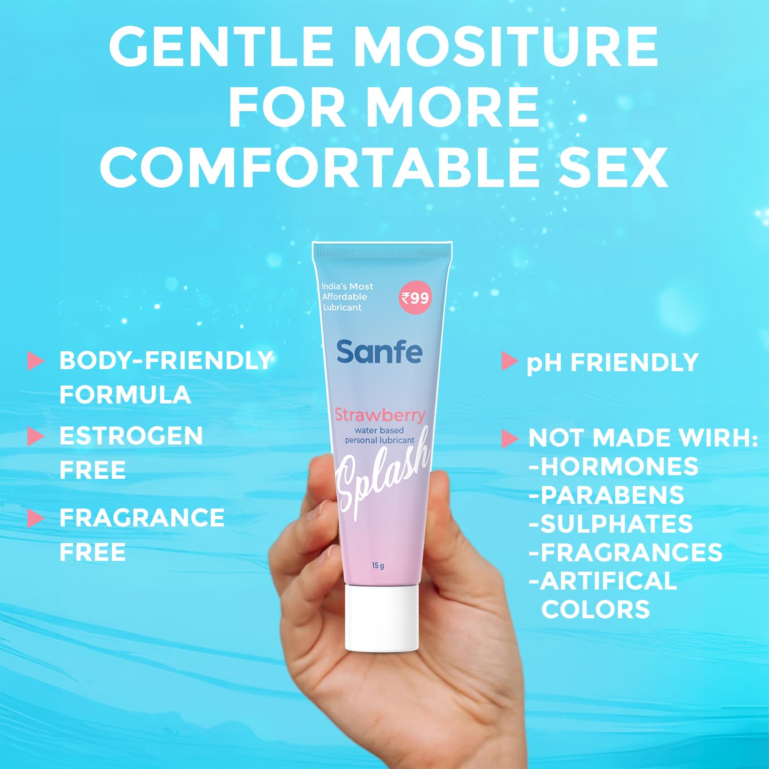 - ??WATER BASED LUBE: Sanfe Splash Strawberry Lubricant is a thick gel that effortlessly glides on and stays where you want it to, quickly preparing you for intimacy and experimentation