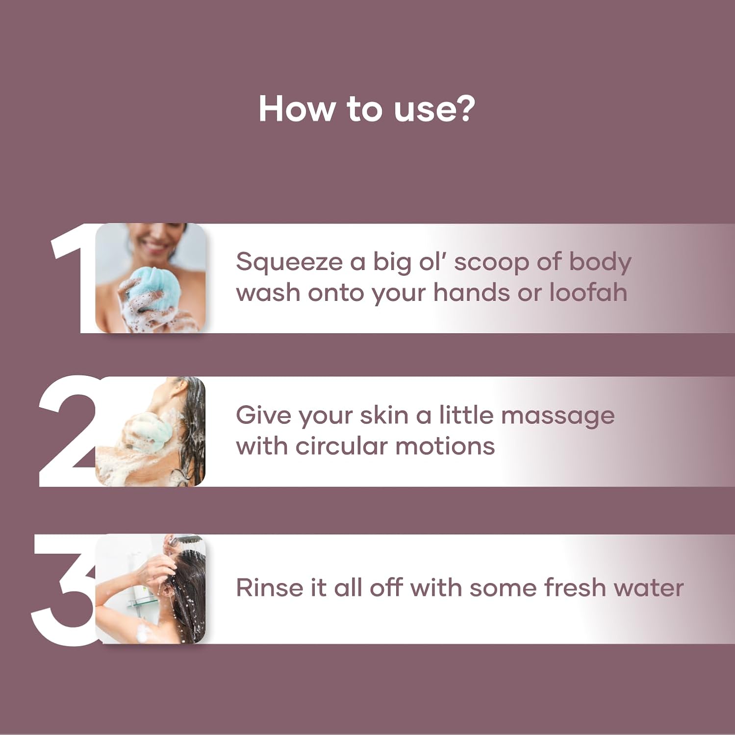 - How to Use It: 1. Squeeze a generous amount of the bodywash onto your hands or loofah. 2. Massage it gently on your skin in circular motions. 3. Rinse off with clean water.