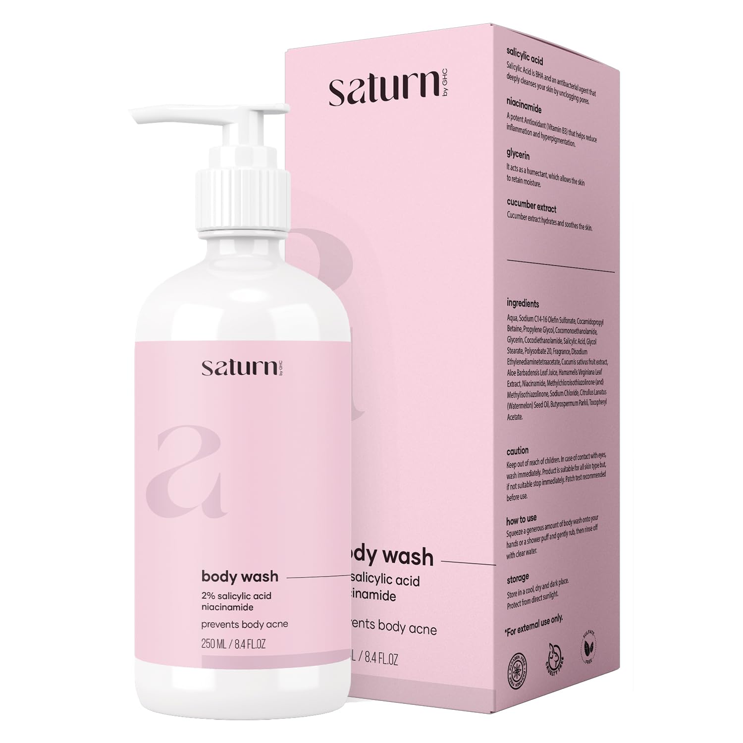 - Benefits of Saturn by GHC 2% Salicylic Acid Body Wash: Enriched with deep action 2% salicylic acid, It has the finest ingredients with anti-bacterial properties that can easily wash off all the blackheads & dead skin cells. With its well-heeled blend of antioxidants & brightening agents, Saturn body wash helps even out skin tone by smoothening bumpy skin texture.