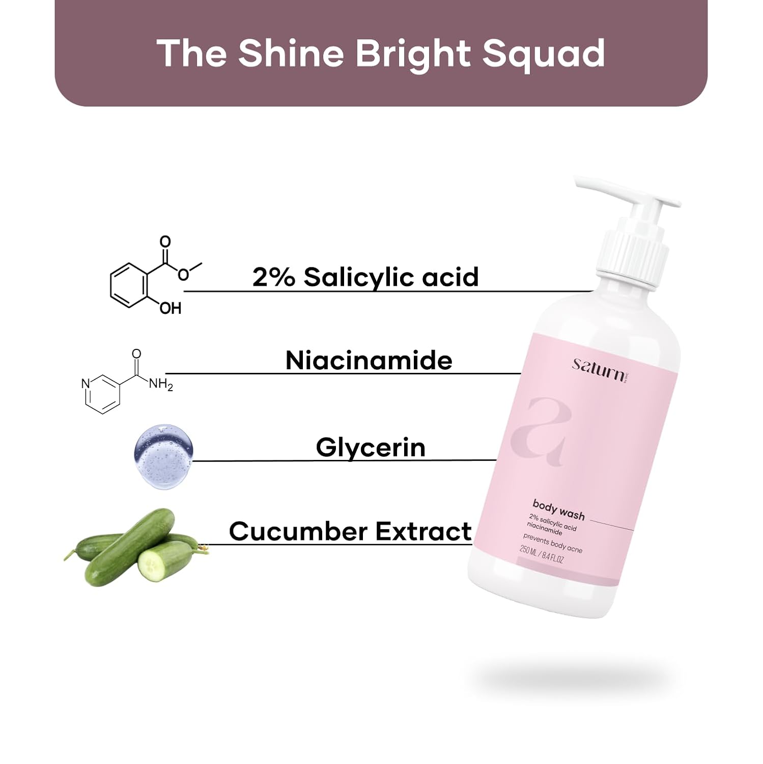 Saturn by GHC 2% Salicylic Acid Body Wash for Women With Niacinamide, Glycerin & Cucumber Extract, Gently Exfoliates & Deeply Nourishes, SLS-Free, Paraben-Free | 250 ml