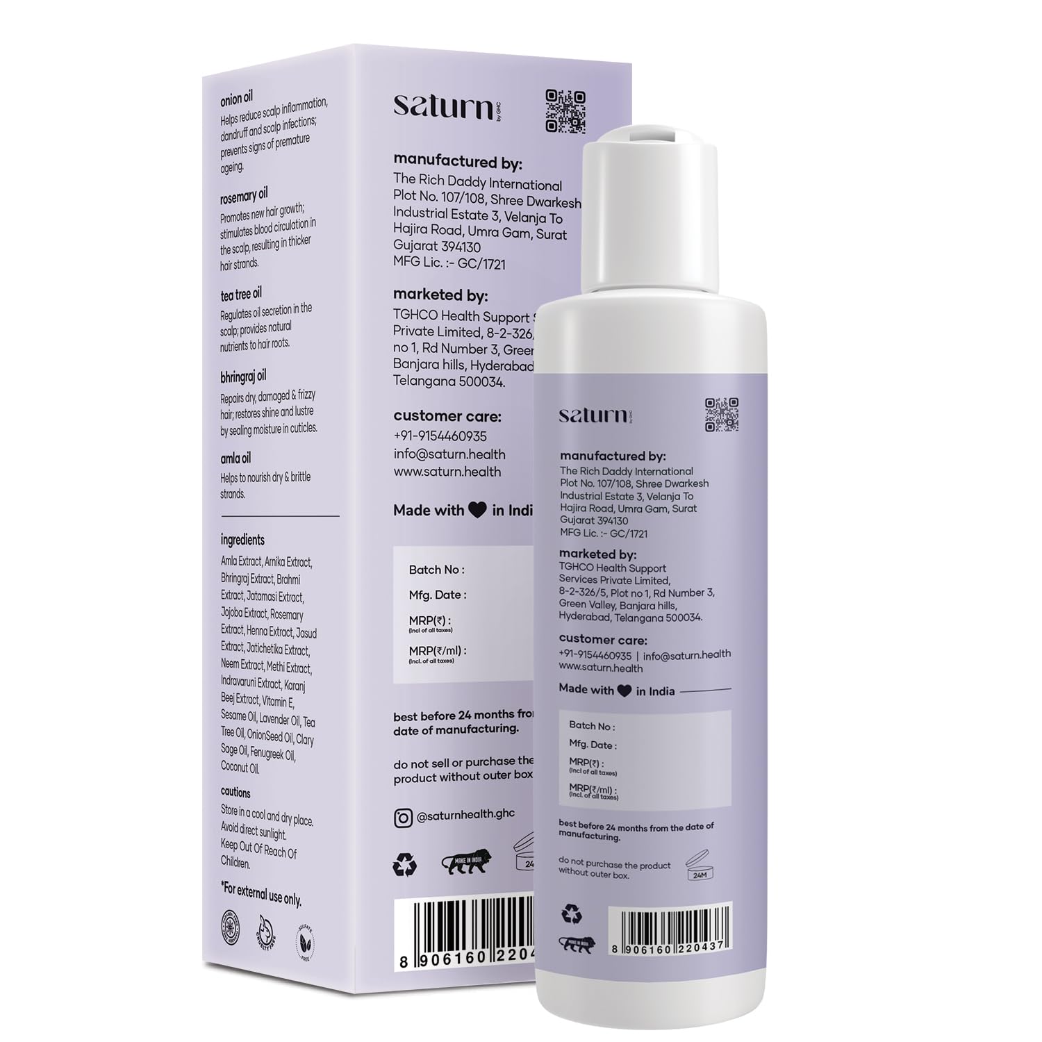 - Directions: Take a small amount of Saturn hair growth oil 2ml - 3ml into your palm, Apply it to the scalp thoroughly and massage it for increased absorption, Leave it overnight for the best results. Package Contains: Saturn hair growth 200 ml