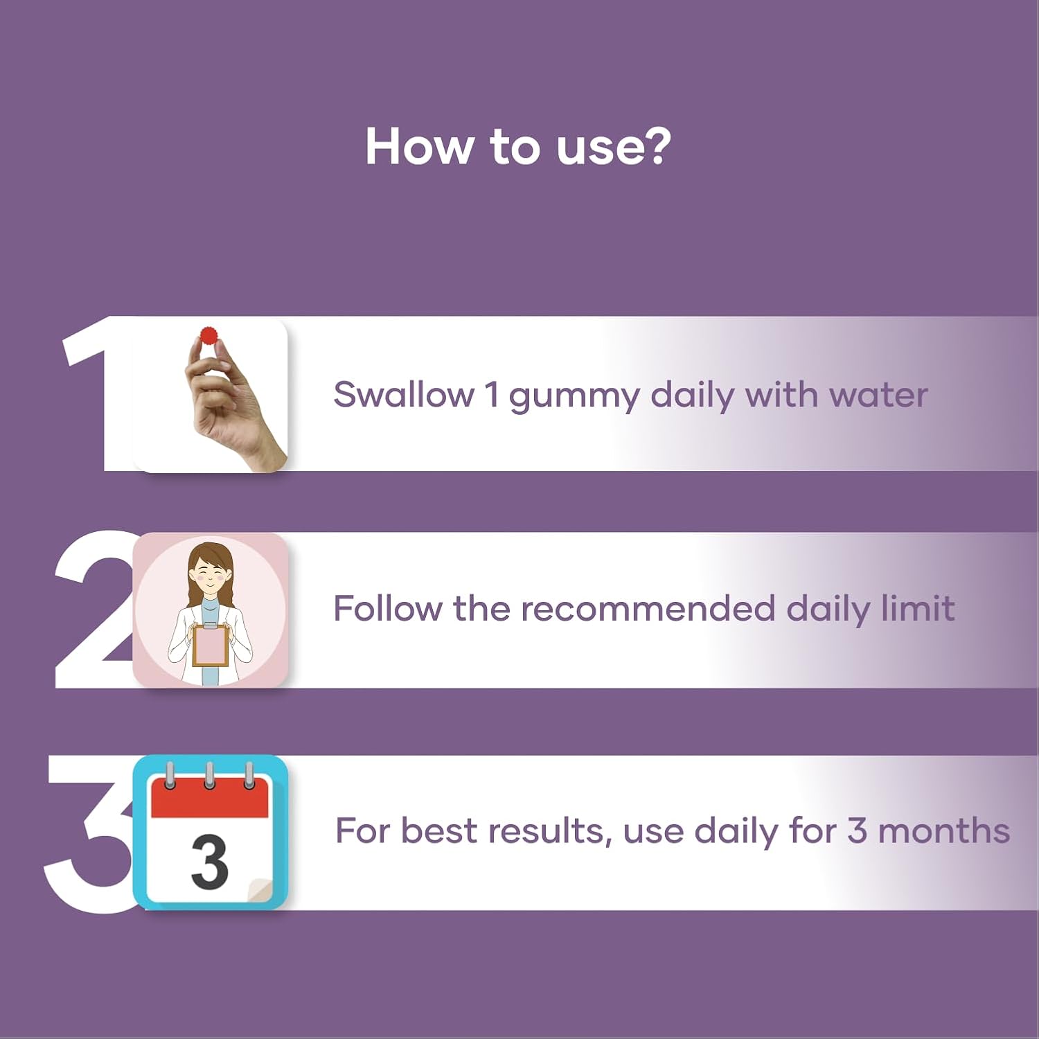 - How to Use It - Take 1 gummy daily with any one meal or as directed by your healthcare professional. Not to exceed the recommended daily usage.