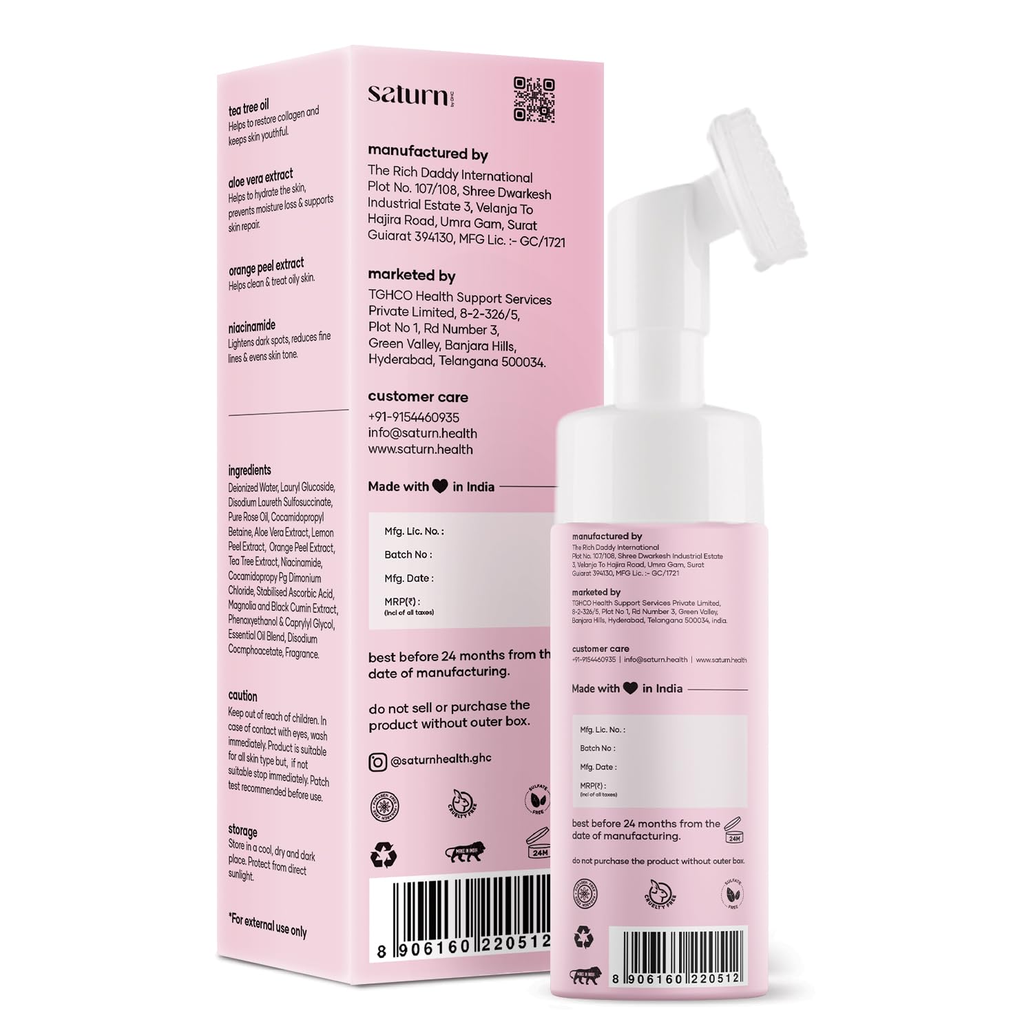 - Direction: Take a small amount of saturn foaming face wash on your palm, rub your palms with the face wash to obtain a rich lather, gently massage onto your face, rinse off thoroughly & use twice daily for better results.