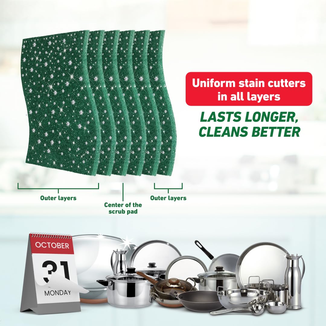 Lasts longer, cleans better– Scotch-brite Silver Sparks has stain cutters which are evenly distributed through the different layers of the scrub pad. This ensures that the scrub pad cleans well from the 1st to the last day of use.