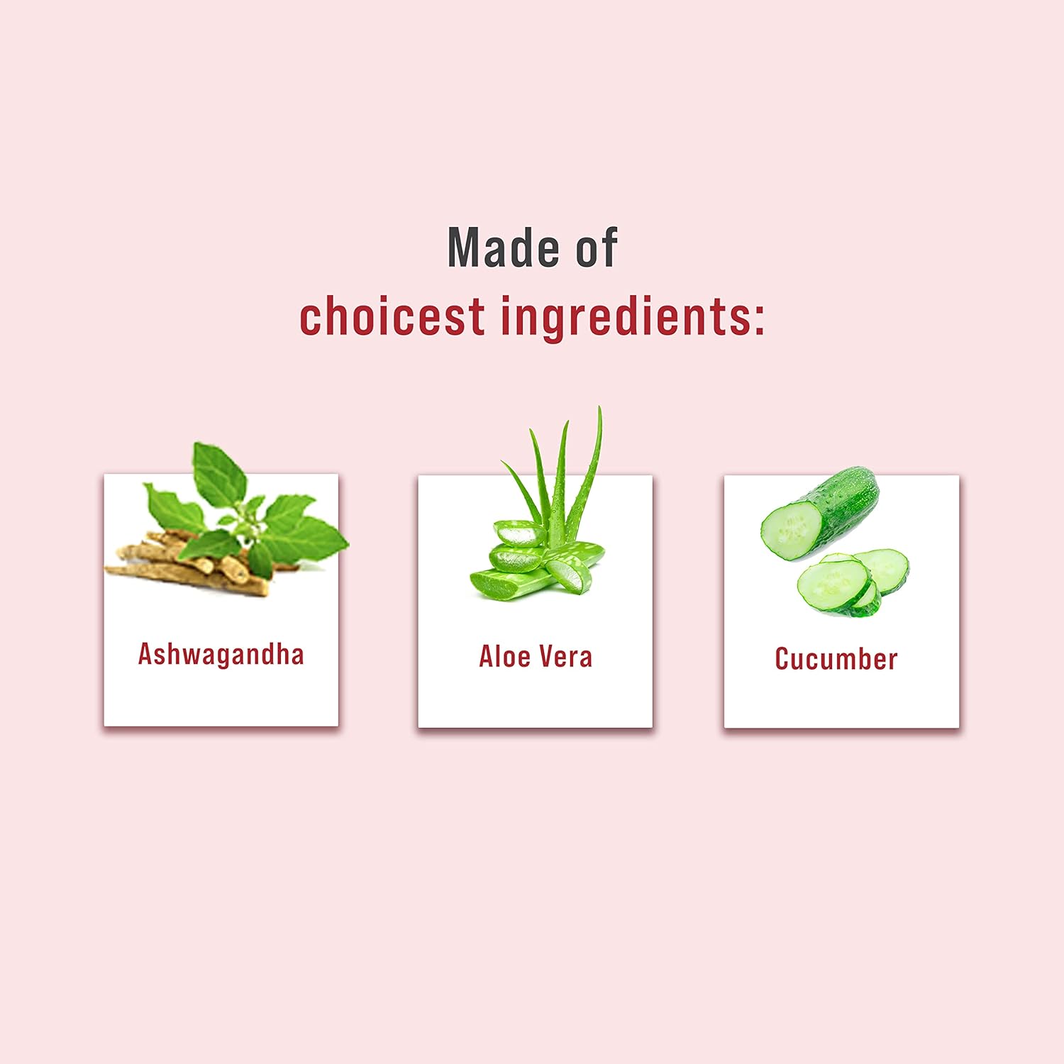 Aqua, Aloe Barbadensis(Aloe Vera) Leaf Extract, Skin Care Extracts (Ashwagandha, Mulethi, Nagarmotha), Cucumis Sativus (Cucumber) Extract, Melia Azadirachta(Neem) Extract, Propylene Glycol, Hydroxyethyl Cellulose, Tocopheryl Acetate (Vitamin E) Oil, Sodium Gluconate, Strawberry Flavour, Potassium Sorbate, Sodium Benzoate.