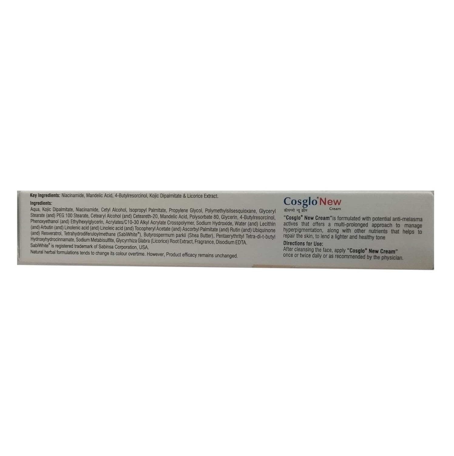 Cosglo New Skin Lightning Cream from Oaknet Healthcare is a powerful blend of ingridients that helps lighten and brighten the complexion. This 30gm cream works to reduce the appearance of dark spots and uneven skin tone, revealing a more radiant and even-toned complexion. With its potent yet gentle formula, it is suitable for all skin types and can be used as part of your daily skincare routine. Apply it evenly on cleansed face and neck for best results. Consistent use may lead to a more luminous and glowing appearance.