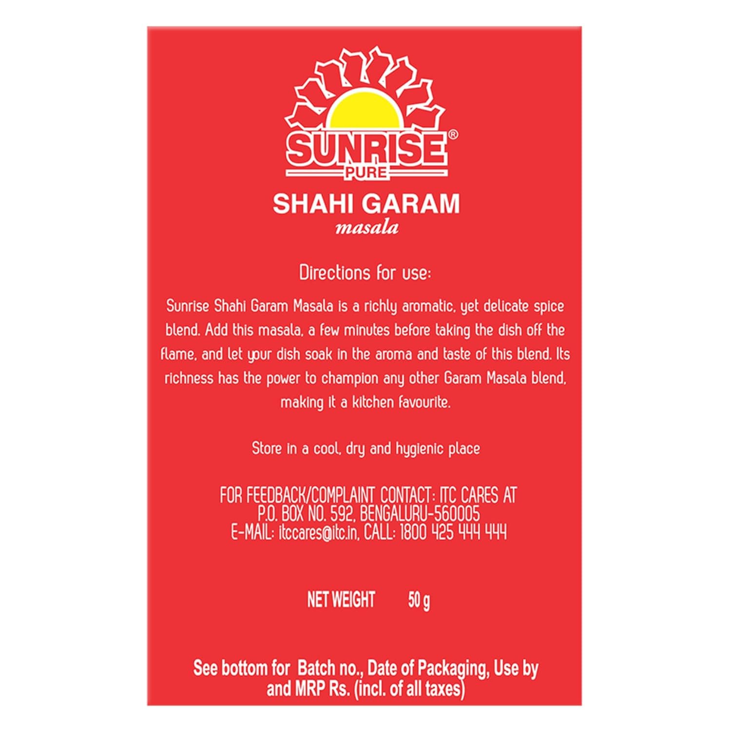 - INGREDIENTS – Sunrise Shahi Garam Masala pack contains Mixed spices like Cardamom brown, Clove, Cinnamon, Cardamom green, Nutmeg, Chilli, Black pepper and Cassia which add a real rich arama and flavours to your dishes.