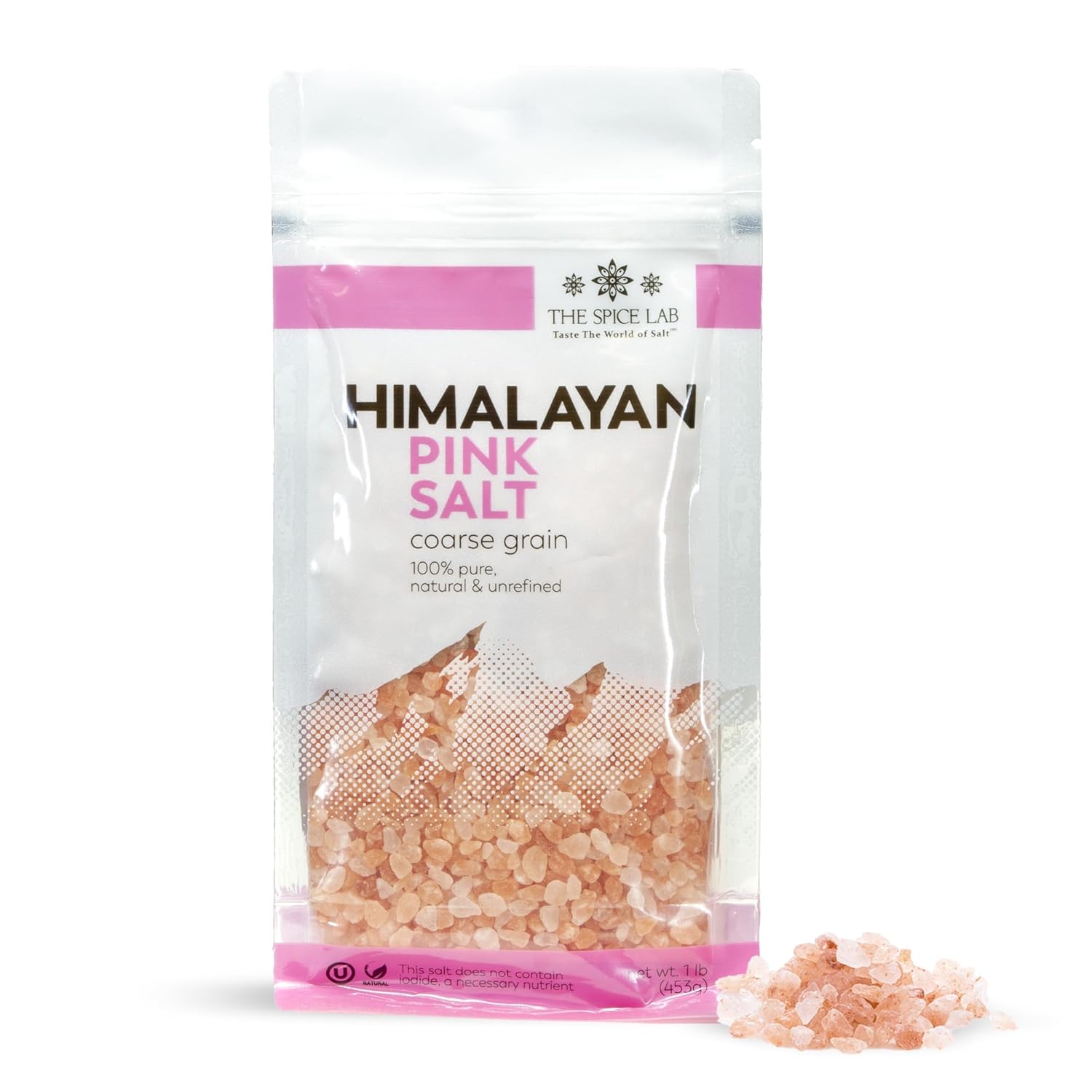 The Spice Lab Himalayan Salt - Coarse 1 Pound - Pink Himalayan Salt is Nutrient and Mineral Dense for Health - Gourmet Pure Crystal Kosher & Natural Certified