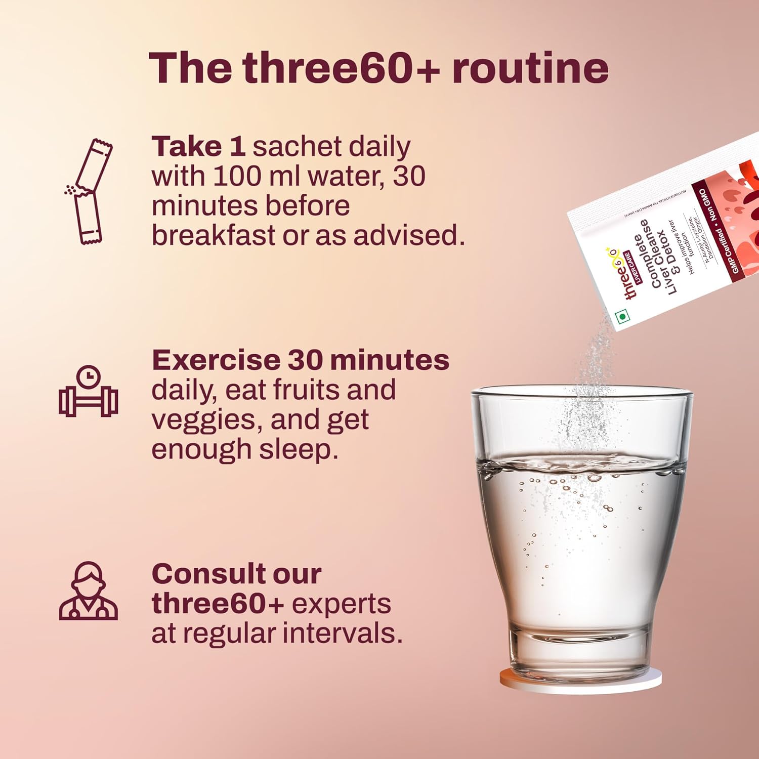 three60+ Complete Liver Cleanse & Detox | Daily detox for your liver | Helps Reduce SGOT/SGPT levels | 30 Sachets | With NAC, ALA, Dandelion & Ginger
