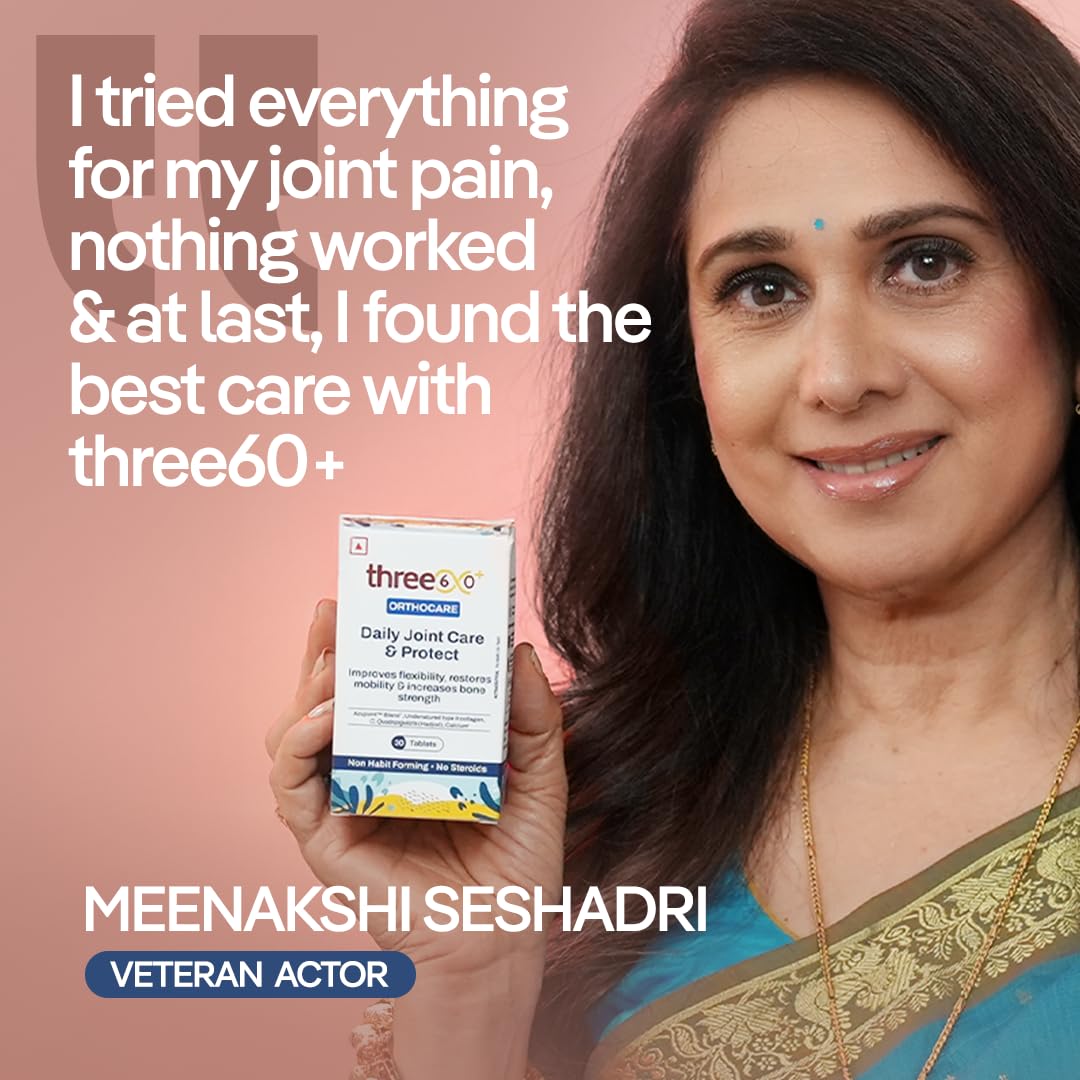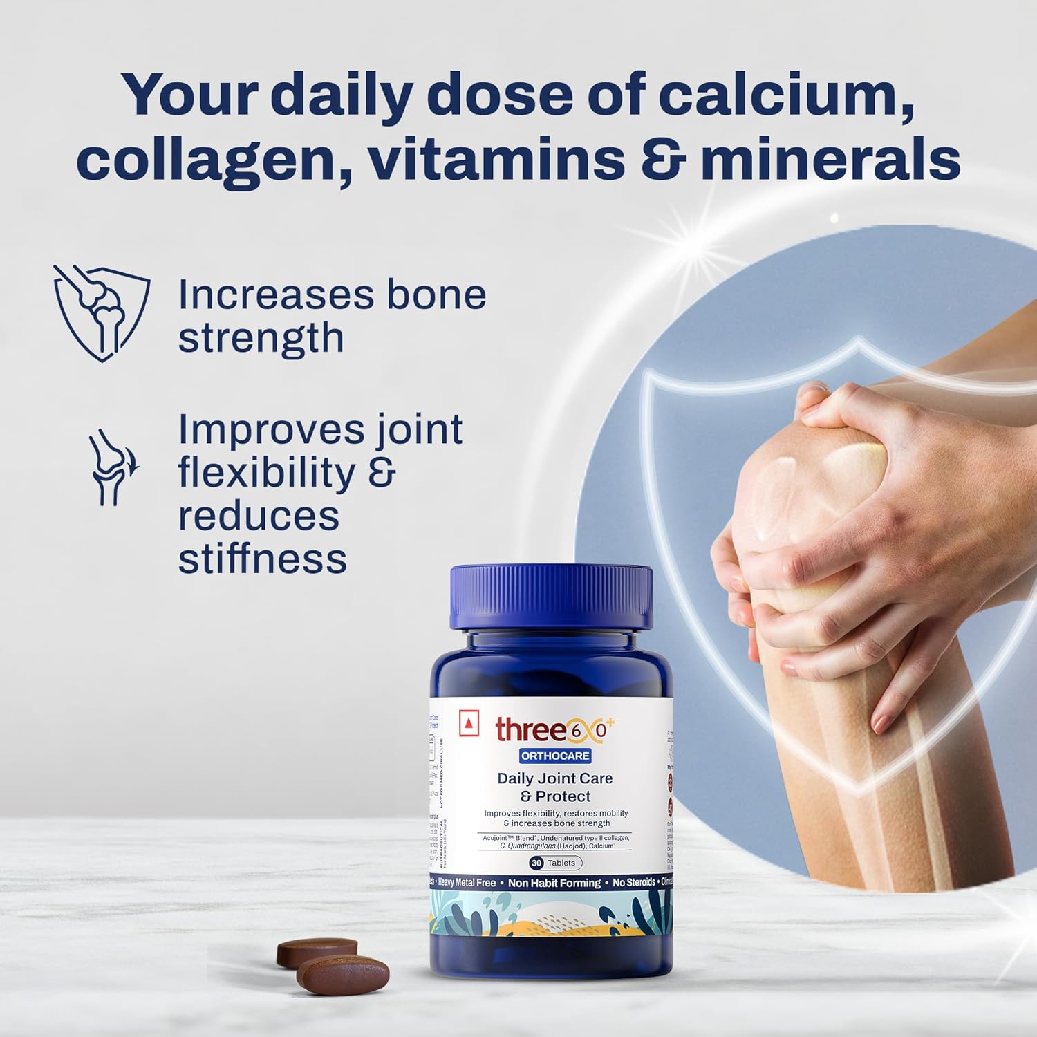 three60+ Daily JOINT CARE & PROTECT tablets | Improves Bone Strength, Promotes Cartilage Repair, Enhances Joint Mobility | Acujoint, Undenatured type-II collagen, Hadjod | (30 Tablets)