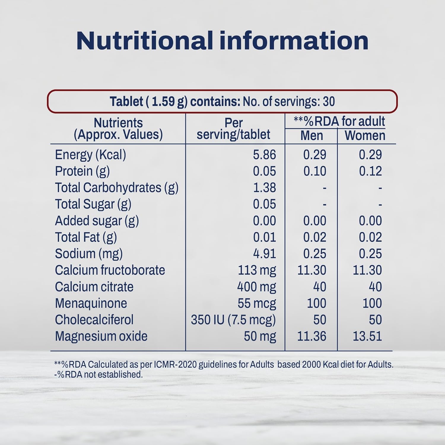 | Special Ingredients | Calcium Citrate, Magnesium, Vitamin K2, & Vitamin D3 |